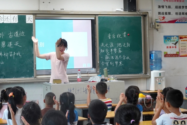萤火服务队志愿者进入课堂,开展儿歌串烧教学活动。志愿者先用简单通俗的语言讲解基础的音乐知识,帮助学生们了解五线谱、简谱等初级乐理内容。他们逐句讲授歌词意义,教唱歌曲音调,让学生们更好地领悟音乐的魅力,丰富自身的情感表达,并采用分组练习的方式,使学生渐渐熟悉歌曲。在志愿者们的不断鼓励下,学生们热情高涨,放开自我,一展歌喉,用洪亮自信的嗓音展示自己。