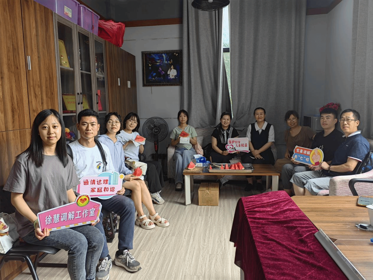 华大青年讯(通讯员 方向晨)为在社区实践过程中了解基层群众生活,感悟千万个“中国梦”组成的民族精神和时代精神;挖掘社会主义核心价值体系在不同层面的具体体现,探寻社区建设“共管”新途径;充分发挥高校在社区建设共管中的服务支撑作用,积极探索青年参与基层治理的有效方式和实施路径,7月14日上午,华中师范大学法学院“法与青居”志愿服务队(以下简称“志愿队”)前往青山区新沟桥街道蒋家墩社区,展开参观研习。实践队实地调研社区共建,探寻家事调解工作室的“共管”方案。
