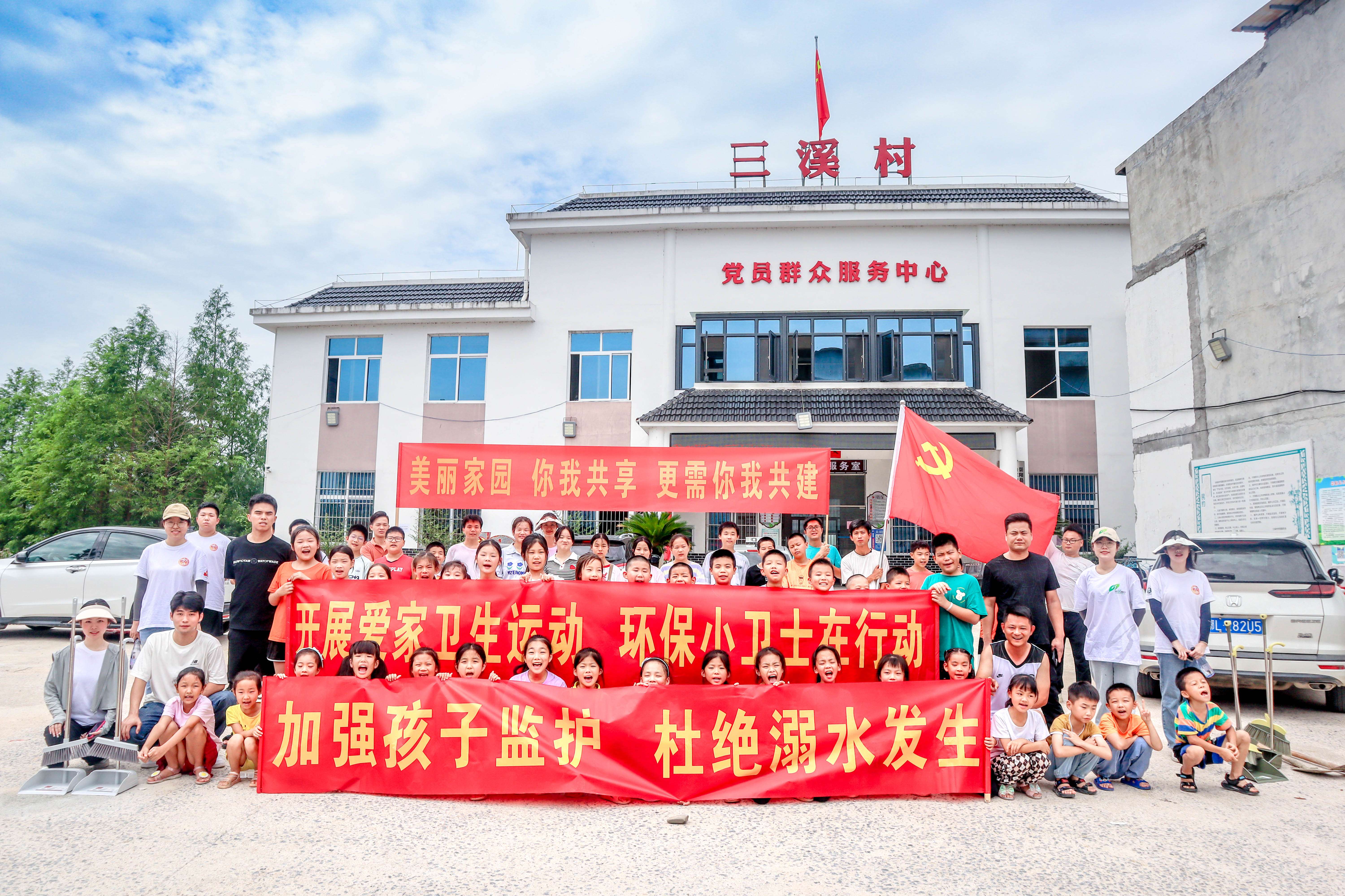 华大青年讯(通讯员 雷雅淋)营造绿水青山,建设美丽中国。为培养广大青少年生态建设和保护意识,弘扬生态文明理念,塑造奋进向上、奉献友爱的新时代青少年形象,7月14日上午,在白霓镇三溪村村委会的带领下,三溪村所有村干部、年轻党员、预备党员和入党积极分子,华中师范大学外国语学院心火支教团白霓队三溪村“希望家园”的8名支教老师和78名学生共同参与以“大手牵小手,小手促大手”为主题的清洁家园活动。活动地点为三溪村村委会至小岗村村委会沿线主干道。