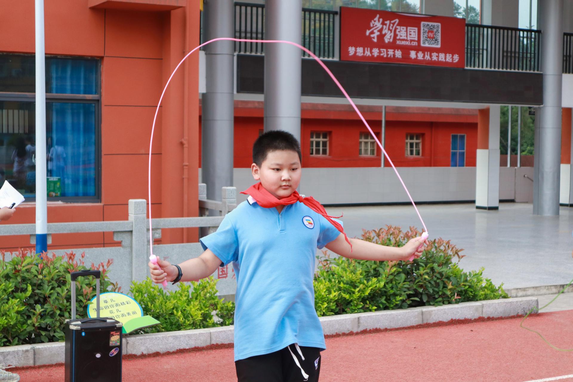 比赛开始前,裁判员向学生讲解比赛规则并强调安全问题。各项竞赛有序开展,计时员、裁判员、安全员各司其职,保障运动会顺利进行。个人竞赛涵盖跳绳、踢毽子、足球绕杆和沙包投篮,考验学生的个人运动技能和协调能力等。四班周安冉获跳绳组第一名的佳绩,她在赛后表示:“跳绳是一项有趣且简单的运动,经常跳绳对身体有诸多益处。这次比赛我之所以能够取得好成绩,全在于平日的训练。”