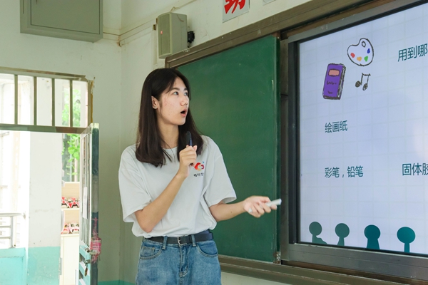 华大青年讯(通讯员 谭洪艳)为培养学生对生物学科的兴趣,感受生命科学的魅力,引导学生认识自然并运用自然的美创造出富有个人特色的艺术作品,7月16日,华中师范大学生命科学学院“偕行筑梦团”2023年助学支教队在宜昌市秭归县沙镇溪小学开展了第九天的支教活动,创新教授了一系列具有生物学科特色的课程。