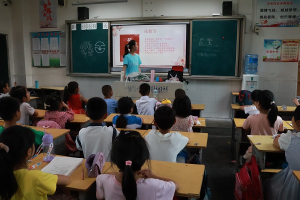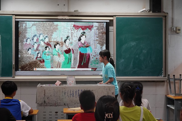 华大青年讯(通讯员 孙龚泽)源远流长含哲理,鞭辟入里育人民。为弘扬中华优秀传统文化、发挥传统文化对青年的浸润引领作用,7月13日至15日,华中师范大学历史文化学院萤火服务队(以下简称“萤火服务队”)于湖北省十堰市龙坝镇中心学校开展国学特色课程。课程包括“敦煌魅力”“风火咸宁”“花朝节庆”三个主题,萤火服务队成员罗君怡、孙龚泽、沈麟然分别担任三个主题课程的主讲人。