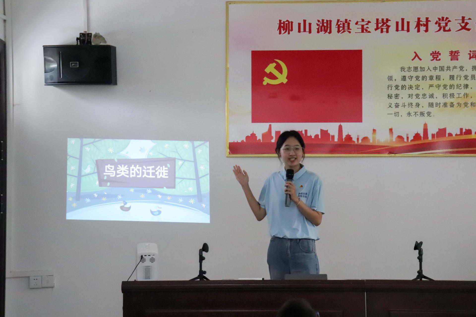 在实践队队员马铭的课堂上,一幅幅迁徙的壮丽画卷在孩子们眼前展开。课程过程中,马铭根据课堂进度设计了相应的问题,在回答问题的过程中引导孩子们清晰认识鸟类的迁徙。除此之外,她还将鸟类的迁徙延伸到人类的迁徙,重点介绍了智人的迁徙和人类历史上最大规模的人口移动——闯关东。课程结尾,马铭带领孩子们对今日的课程内容进行复习巩固,孩子们对迁徙的相关知识有了更清晰的认识。