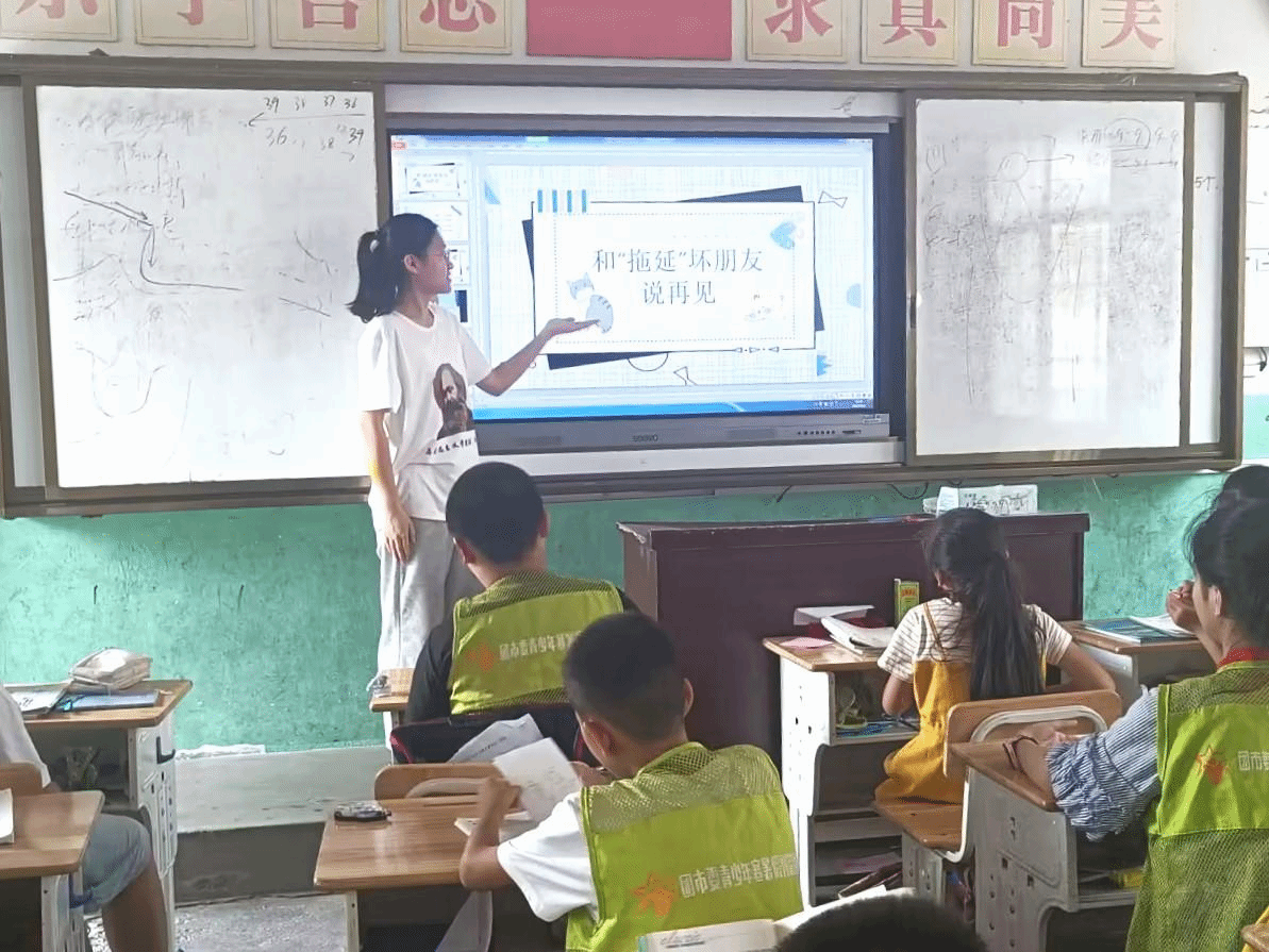 华大青年讯(通讯员 邓潇潇)为科普行为规范相关知识,培养青少年良好生活习惯,7月21日,华中师范大学马克思主义学院“青马红心”实践团于武汉市黄陂区姚集小学开展“和拖延症说再见”行为养成主题教育课程。本次课程旨在带领学生了解拖延症表现和危害,探究拖延形成原因,找出克服拖延方法,培养学生珍惜韶华、积极行动的思想主动和行为自觉,实践团成员薛聪颖担任本次课程主讲人。