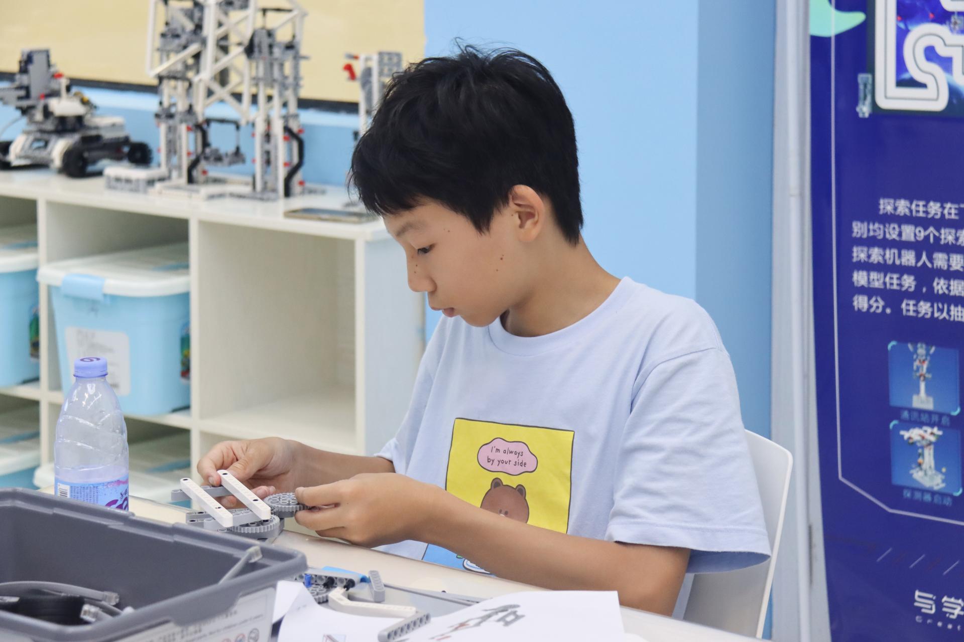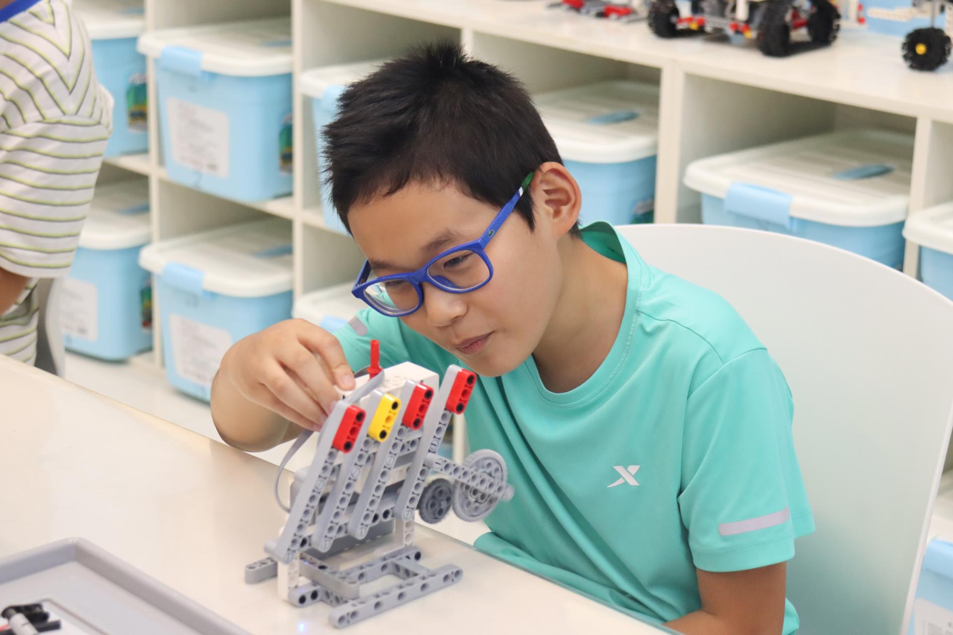 在学生动手操作环节前,胡诗雨现场展示了用小威奇拼搭出的雨刮器的工作原理,引导学生仔细观察,深入思考。随后,学生们以小组合作以及自主探索的方式,参考雨刮器模型拼搭指导手册,完成雨刮器的积木拼搭过程。不少学生提前完成指导手册中的拼搭过程后,仍积极思考其他拼搭思路以及优化路径。本次课程的学习方式不仅培养了学生严谨踏实的科学态度和动手能力,也锻炼了学生们沟通、合作的能力,激发了学生们的探索欲和好奇心。