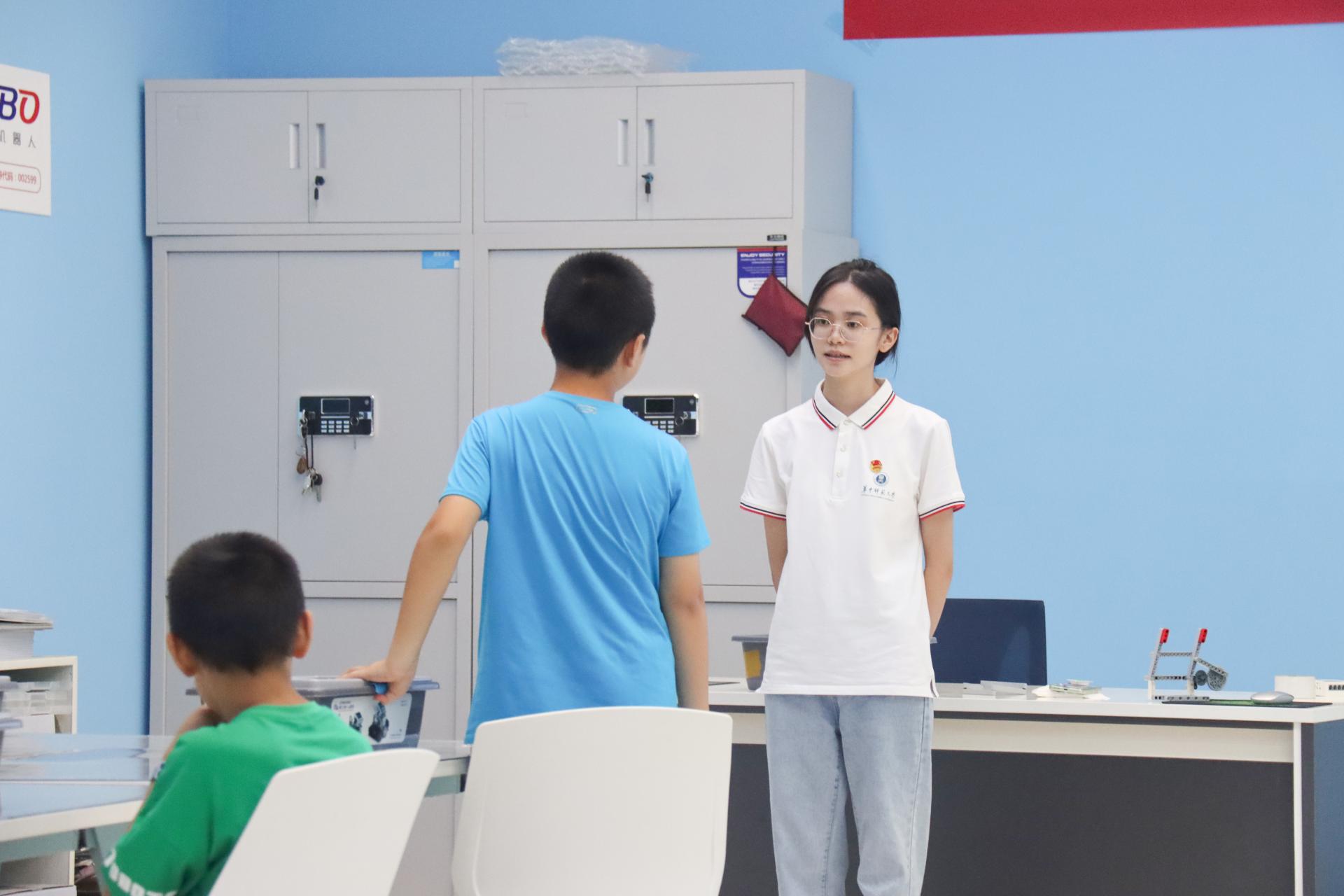 华大青年讯(通讯员 郭星怡)为提高青少年科学素养,培养学生动手实践能力和科学探究能力,促进馆校合作,探索科技馆课程开发新路径,人工智能教育学部智远同心实践队科技馆分队(下文简称“实践队”)于7月22日下午在湖北省科技馆开展了特色课程讲解。本次课程主题为“下雨神器雨刮器——四边形的妙用”,共有二十七位青少年参与课程,实践队成员胡诗雨担任主讲人。