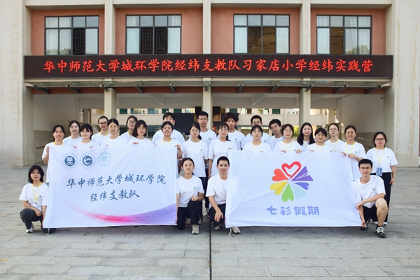 华大青年讯(通讯员 陈佳璇 涂紫贤 蔡唯 黄修华)为加强乡镇学生素质教育,助力乡村振兴,华中师范大学城市与环境科学学院经纬支教队(以下简称“经纬支教队”)于7月9日至7月23日赴丹江口市习家店小学开展暑期支教,110名当地学生参与课堂。