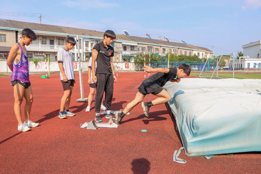 当前,西湖中学正在进行田径赛备赛,为满足西湖中学田径队的训练需要,实践队派出田径运动员专门进行指导,早晚两次开展训练。实践队中还有来自篮、足、排、乒、田径、体操等不同项目的十余名队员,根据学生兴趣和自身条件,队员们分别组建篮球队、足球队、排球队,由队员们担任指导老师,利用体育课时间进行训练。