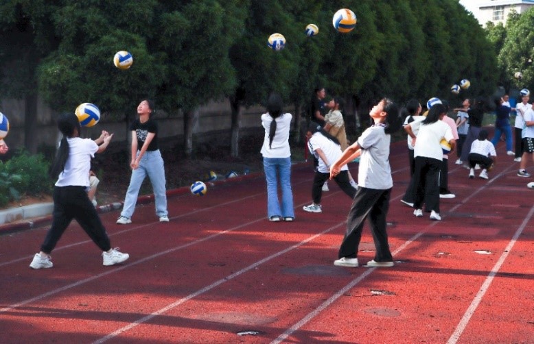 在排球和足球训练中,实践队员从球类运动的文化引入,对技术动作中的重难点进行细致讲解。根据同学们对站位、战术了解不足的情况,实践队员有针对性地进行专业知识的介绍,使同学们深入了解排球、足球运动,提高体育运动专业化水平。