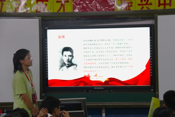 实践队队员安瑶根据当地彭杨学校由来引出彭湃和杨殷两位革命先烈,讲述了他们为革命英勇就义的事迹。龙港作为鄂东南革命活动的根据地,同学们对此感到很熟悉,学生小英(化名)说:“我爸爸以前跟我讲过彭湃烈士的故事,他即使被严刑逼供也没有屈服,他是个英雄!”许多同学在课堂上也分享了他们所知道的红色故事,此次班会调动了学生们学习红色文化的积极性,让红色文化走进了课堂,让同学们感悟到了红色精神的深刻内涵。