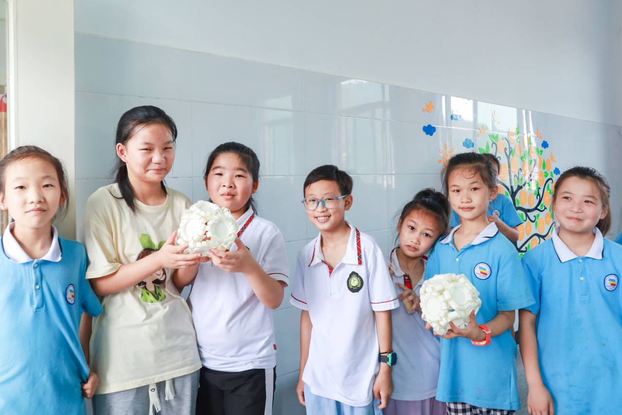 在具体的课程中,李斯婧选取了纸杯小灯笼、雪糕棒书签和樱花绣球三种手工艺品,分别对应废弃纸杯、雪糕棒、旧报纸三种可利用资源,力求带领同学们在环保意识养成的同时提升动手能力。