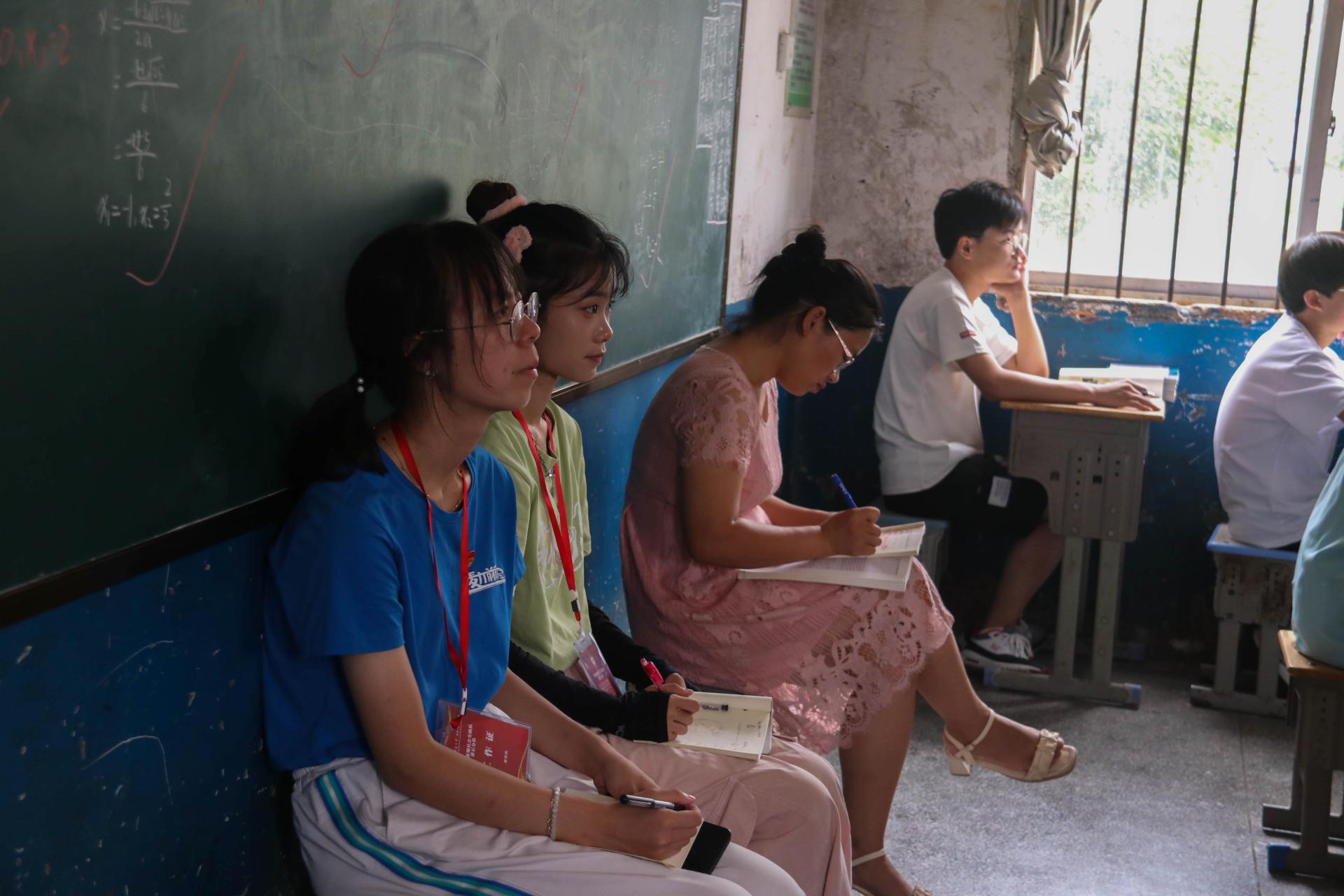 当日上午,实践队队员于活动室集合完毕,开始以教育小组为单位开展进课堂听课活动。实践队第四组在组长黄雨玥的带领下,前往富水中学初三(4)班旁听数学课。黄雨玥强调:“此次听课任务是社会实践中的重要一环,不仅使我们了解本班课堂基本情况,与同学关系更加熟稔,也为我们后续的讲课安排提供了宝贵的学习资料,希望大家都可以认真对待,专注投入到当地的数学课堂中。”