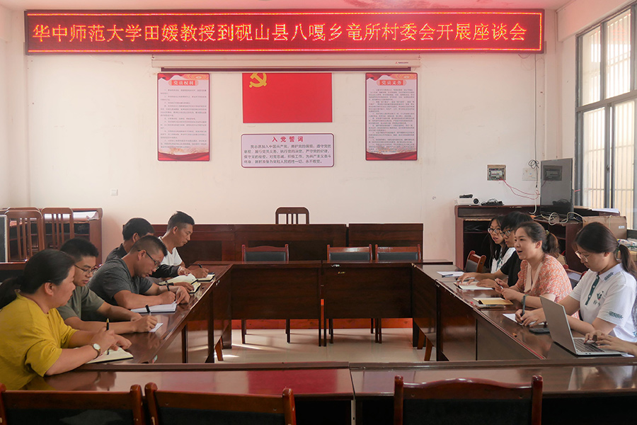 华大青年讯(通讯员 陈维熹)7月26日上午,华中师范大学心理学院教授田媛于云南省文山州砚山县八嘎乡竜所村委会举行座谈会。八嘎乡副乡长李德勇、八嘎乡应急中心主任李贤世、竜所村党委书记沈德贵、竜所村党委副书记肖定全及竜所村儿童主任谢爱出席本次座谈会,聆杉实践队队员代表参与此次会议。