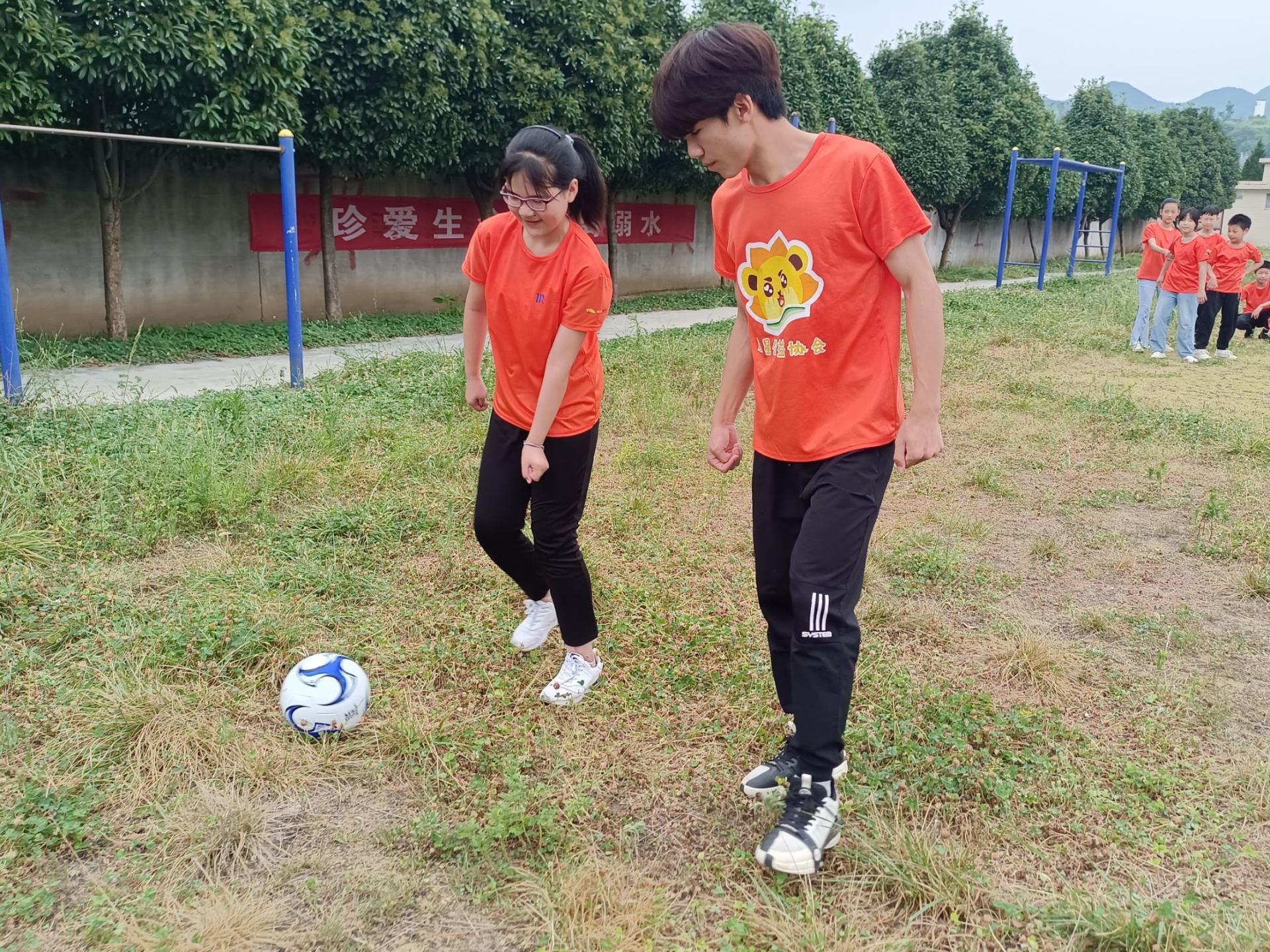 踢足球中的“踢”虽只有一字,却不好把握。在带领同学们做好热身运动后,吴振翮为同学们演示踢足球的正确姿势。演示完毕,吴振翮将同学们分为三组进行接力运球。在过程中,同学们在草地上来回踢球,因为动作不熟练,他们的运球有些缓慢。吴振翮还发现有同学踢的力气过大,很难控制球的走向,于是让同学们停下,提醒同学们踢球的时候用力小一些。吴振翮还邀请几位同学上前演示,并根据每位同学踢的情况,将他们的问题一一指出。经过吴振翮的讲解,同学们再次尝试,许多同学都能够做到来回运球,他们的脸上满是笑容。