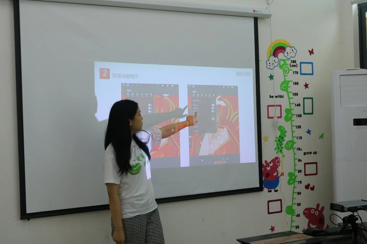 动画是小朋友们最为熟悉的媒介形式之一,容易吸引小朋友的视觉和听觉注意力,让其在轻松愉快的氛围中接受知识和信息。“让传统文化动起来、活起来”,杨焱用简单的动画制作技巧,帮助小朋友们将之前绘制的图样做成简单的动画,进一步加深了小朋友们对传统服饰的记忆,丰富小朋友们的课堂体验感。
