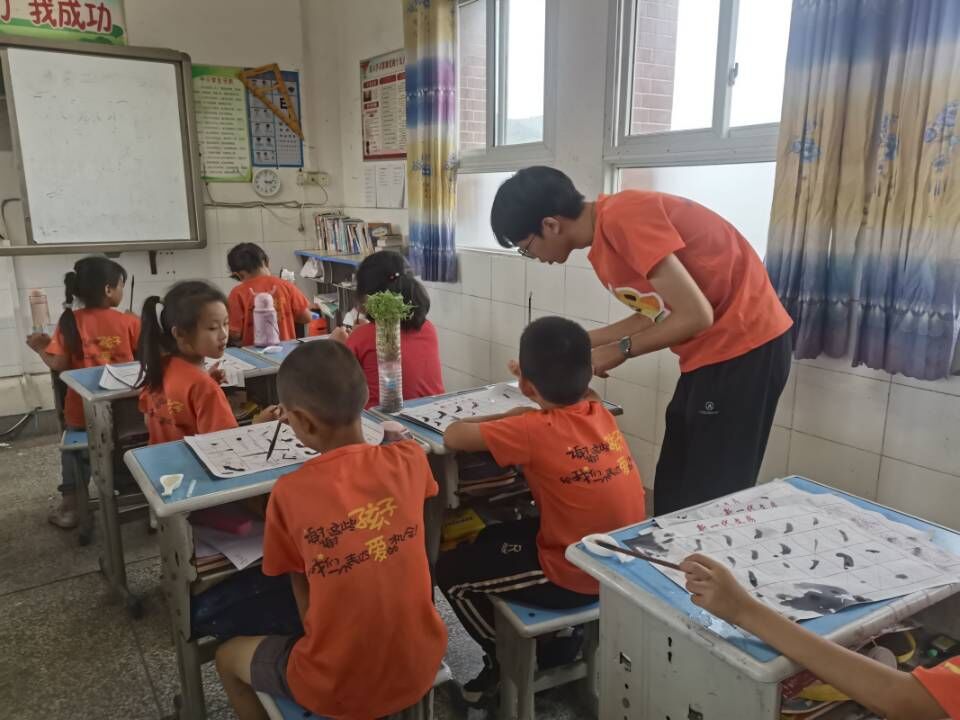 华大青年讯(通讯员 程佳薇)7月26日,华中师范大学辰星支教队(以下简称“辰星支教队”)于湖北省十堰市郧阳区南化金叶希望小学开展了第十一天的工作。辰星支教队队员为学生们带来了“书法之软笔书法”与“手工之装饰柱”等一系列素质课程。队员们在课程中穿插中国传统文化,以文墨润心,以传统铸魂,引导学生立德树人、成才明志。