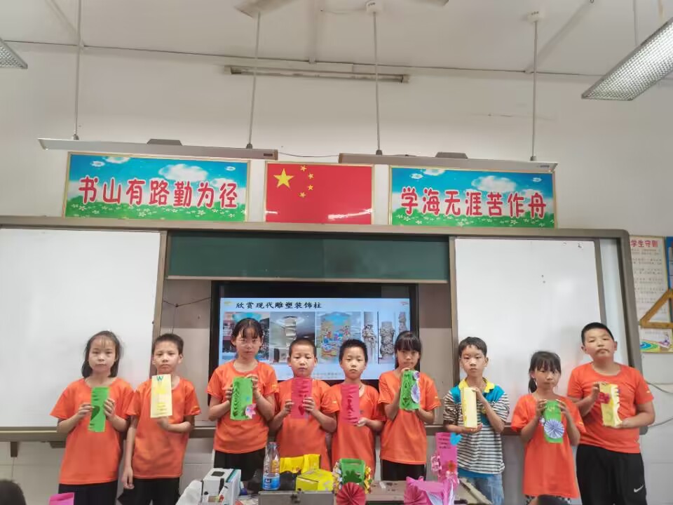 乾坤泱泱华夏,剪纸悠悠指尖。支教队队员逄晓娜为同学们带来了手工之装饰柱,从装饰柱的形状、装饰方法再到装饰柱的经典作品,同学们对装饰柱有了基本的了解。逄晓娜让同学们以小组为单位进行装饰柱的创作,小组中的每位同学负责制作装饰柱的一部分最后组合到一起,同时需要保证每一部分与整体风格的统一性。在小组合作的过程中,同学们相互帮助、齐心协力,共同完成了一个作品。最后,逄晓娜请每个小组分享装饰柱以及其寓意,同学们积极发言。逄晓娜总结道,她在每个小组不同的作品中看到了孩子们对未来美好的想象。在这节手工课上,同学们用一把剪刀赋予彩纸生命,在剪刀的开合间,感受中华传统艺术的生命和魅力。