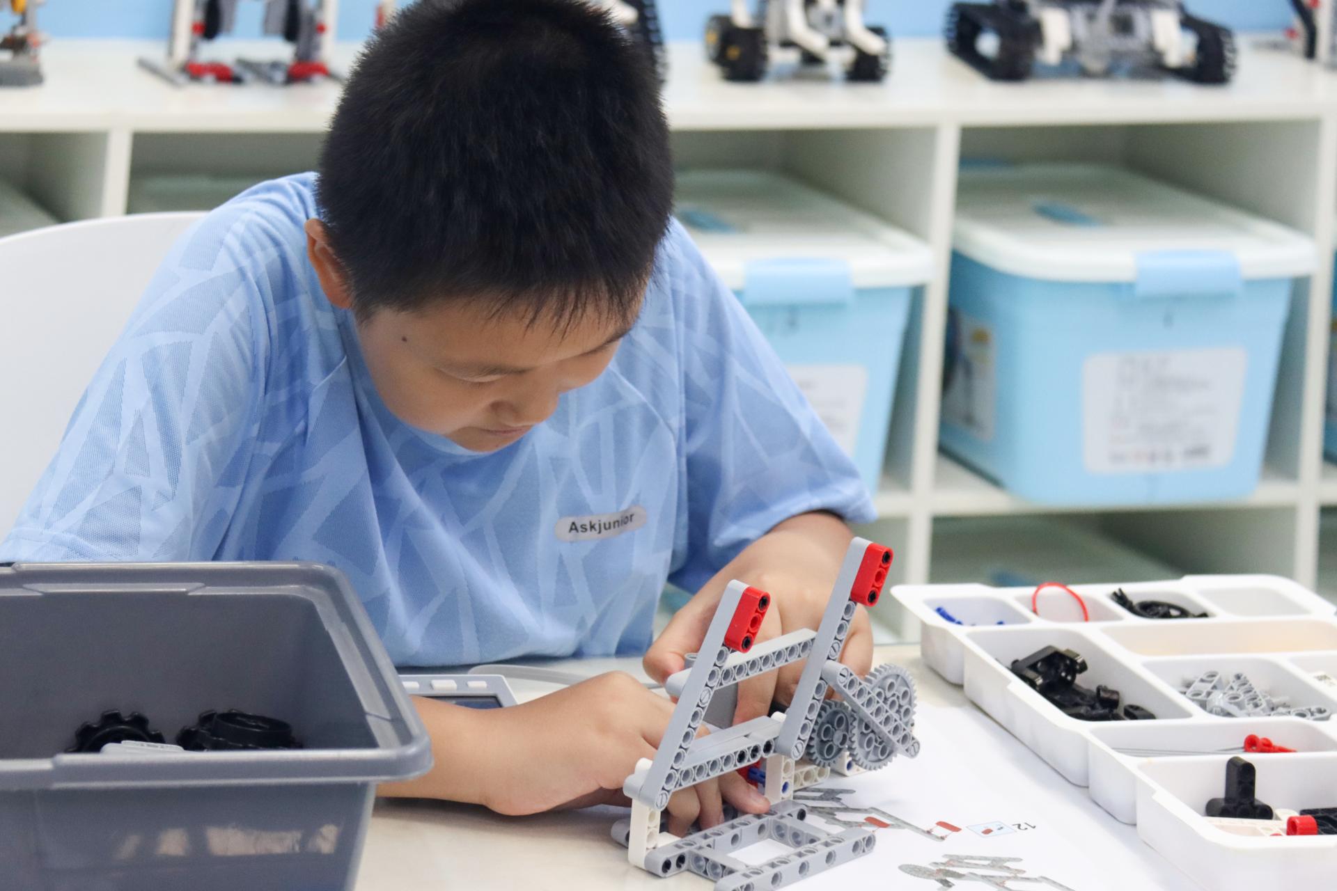在“下雨神器雨刮器——四边形的妙用”课程中,主讲人陈琦帆从雨刮器这一常见事物出发,由浅入深地讲解雨刮器的模型结构与曲柄摇杆的组成构架等机械结构知识。在雨刮器的积木拼搭过程中,“小科学家”们在基本拼搭流程的基础上,积极思考其他拼搭思路以及优化路径。