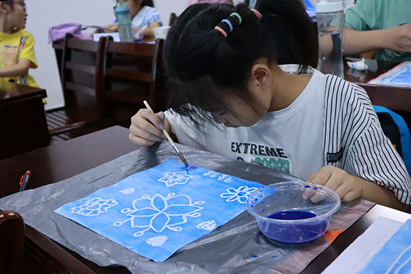 华大青年讯(通讯员 魏晓暄 赵雯)为提升学生的艺术素养,陶冶人文情怀,华中师范大学心火支教团新洲队(以下简称“新洲队”)于7月26日下午在新洲区图书馆及周欣书城开展美育课程“蜡染花布”“一方红纸”,并绘制百米画卷。