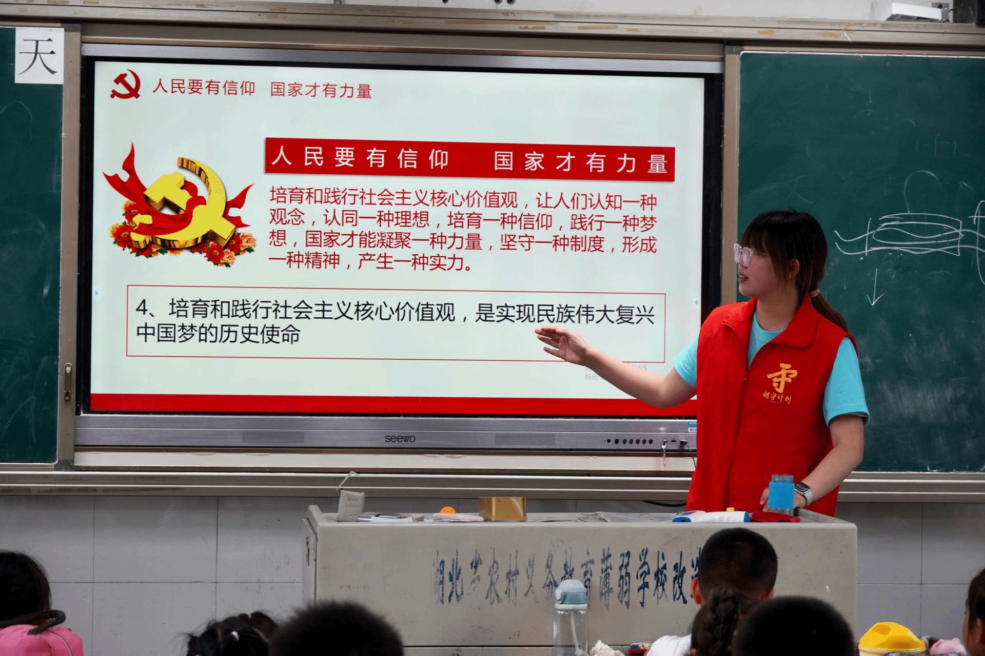 华大青年讯(通讯员 严羽彬)为丰富乡村学校德育工作,贯彻落实立德树人根本任务,优化班级管理,7月27日至7月29日,华中师范大学历史文化学院萤火服务队(以下简称“萤火服务队”)在湖北省十堰市竹溪县龙坝镇中心学校面向暑期夏令营营员开展德育主题系列班会。本次德育主题班会充分考虑学生学情,根据不同年级的认知程度与学习情况,将班会分为社会主义核心价值观教育和铭记党史教育两个主题。