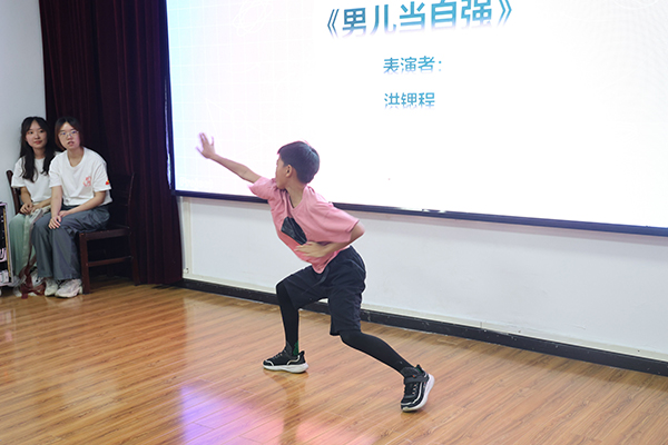 武术表演《男儿当自强》中,学生以灵活拳脚展现中华武功的奥妙;实践队队员张高独唱《少年》,表达了他对学生的深切情谊与真诚嘱托;诗朗诵《诗海拾贝》中,学生们用稚嫩的童声朗诵诗词,在一字一句间,感受中华文化的博大精深、源远流长;《Keep Bboy》街舞表演以多样的技巧为观众带来与众不同的视觉体验,发扬学生个性、展现舞蹈激情。