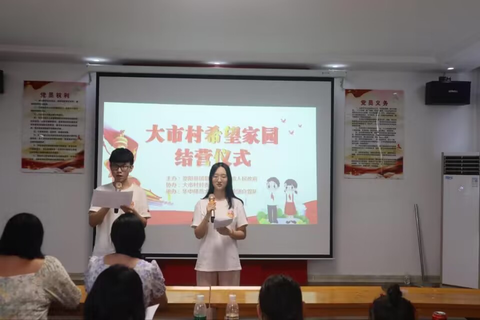 华大青年讯(通讯员 黎环)7月29日,华中师范大学外国语学院心火支教团白霓队(以下简称“白霓队”)希望家园结营仪式在白霓镇大市村、金龙村和三溪村举行。本次结营仪式由崇阳县团县委、白霓镇人民政府主办,各村村委会协办,华中师范大学外国语学院心火支教团白霓队承办。