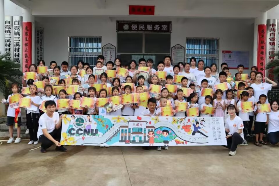 各支教队员依次寄语,华中师范大学心火义教团白霓队2023结营仪式在合影留念后落下帷幕。本次夏令营依据“希望家园”崇阳模式开展安全自护教育第一课、红歌学唱课、心理健康教育课等六课,并依托专业优势,开展了趣味语文、趣味科学、绘画手工、青少年普法等9类76门素质课;同时利用周末时间带领孩子们开展“环保小卫士”村湾清洁活动、“乡土文化在白霓”游园,响应了“双减”政策,坚持“五育并举”,促进了营员全面发展。