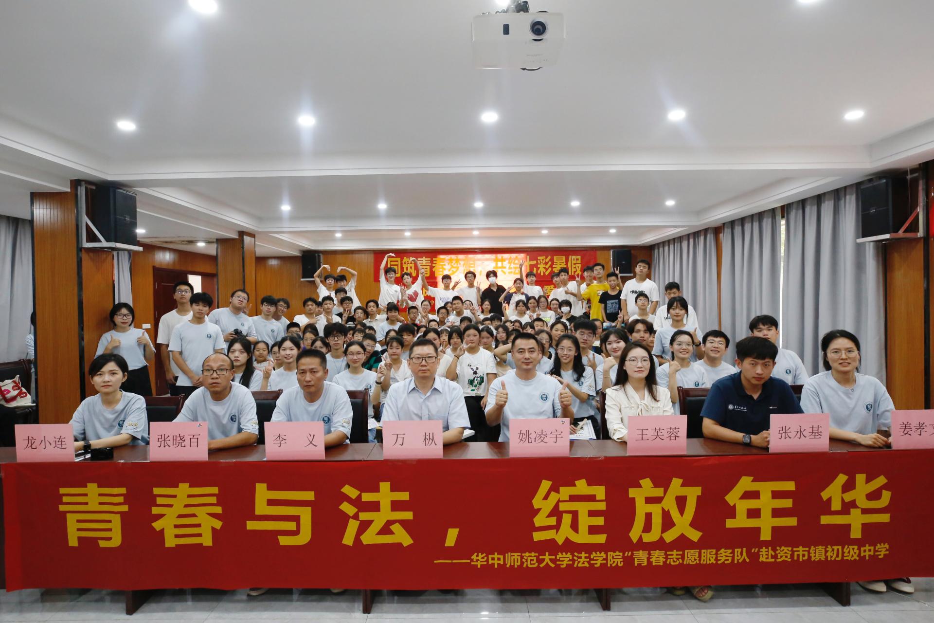 此次志愿服务活动获得团中央的立项支持,服务队由华中师范大学法学院16名本科生志愿者与3名研究生志愿者组成,以“青春与法,绽放年华”为主题,为资市中学学生带来了为期15天的学习拓展活动。该活动以服务关爱农村留守儿童为主旨,以法治教育为特色,设计了法治大讲堂、红色教育、心理健康教育、特色体育教育等课程。同时,服务队秉持华中师范大学法学院“慎思明辨,法行天下”的院训,依托专业优势,学习贯彻习近平总书记关于教育的重要论述,全面贯彻党的教育方针,推进普法教育,引导青少年学法、知法、守法、用法。