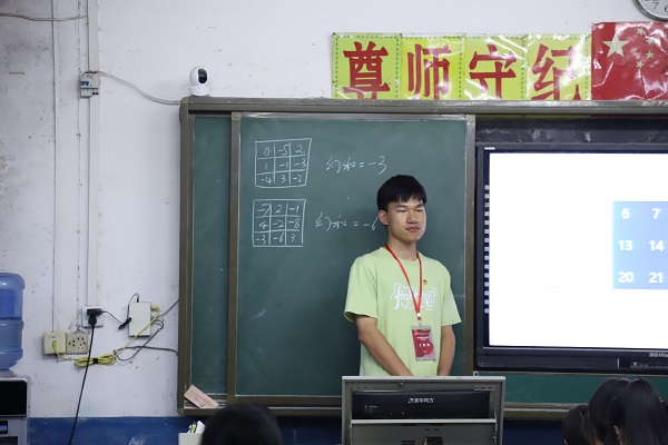 华大青年讯(通讯员 刘柏贞 吕俊伟)8月3日,数学与统计学学院菁诚实践队(以下简称“实践队”)在湖北省黄石市阳新县龙港镇富水中学(以下简称“富水中学”)开展一系列主题班会活动。活动旨在引导学生发现生活中的数学,体悟数学之美,培养学生的主动发问和自主思考能力。