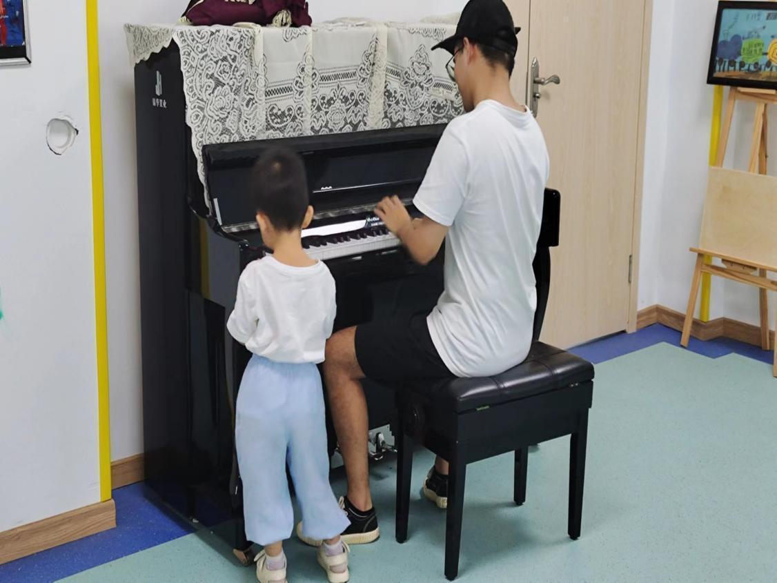 在教育陪伴方面,秉持着“玩中学、学中玩”的理念,星未来服务队咸宁分队的队员们陪伴孤独症儿童弹奏钢琴和画画。此类艺术小课堂为孤独症儿童提供了丰富多彩的教育陪伴,让孩子们在轻松愉快的氛围中提高专注力、观察力和创造力。同时也可以让孤独症儿童的感官受到刺激,锻炼手眼协调能力。