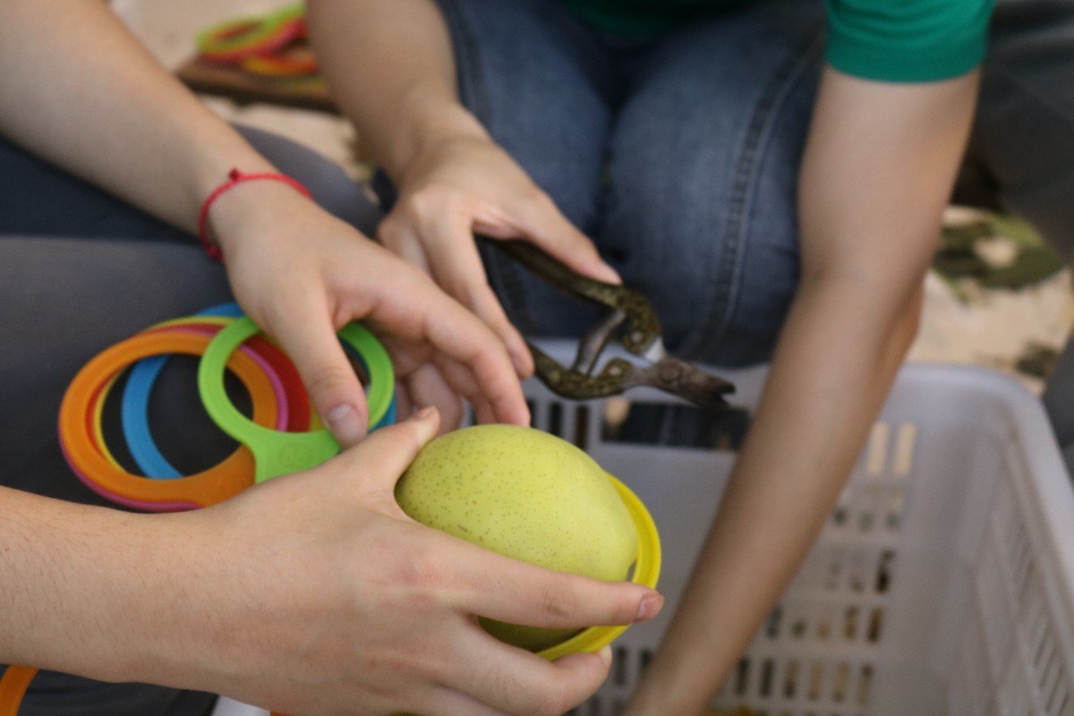 黄金梨的拣选包装流程经过精心设计,总体分为三道工序。首先,实践队队员将梨从人工套上用于防虫防菌防水的黄色特制袋中取出。他们细心辨别出坏果、烂果并将其取出,挑选出的优质好果,悉心修剪梨柄。这样的细节处理,是为了避免其在运输过程中刺伤彼此,造成不必要的损耗。接着,实践队队员凭借特制工具将梨分为70、80、90三个尺寸,分别装箱,确保每个尺寸均得到合理的包装与保护。最后,实践队队员分别为每个尺寸的黄金梨套上泡沫保护套,将其分别放入泡沫箱中。