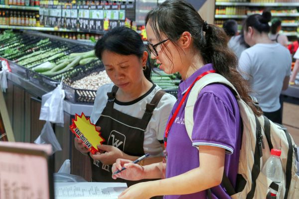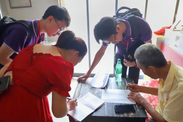 实践队的调研工作通过多个层面展开,除了在龙港镇进行走访,实践队队员还在阳新县富水中学向部分同学发放调查问卷,向同学们询问对学校基础设施的满意度及建议,并进行数据收集与分析。