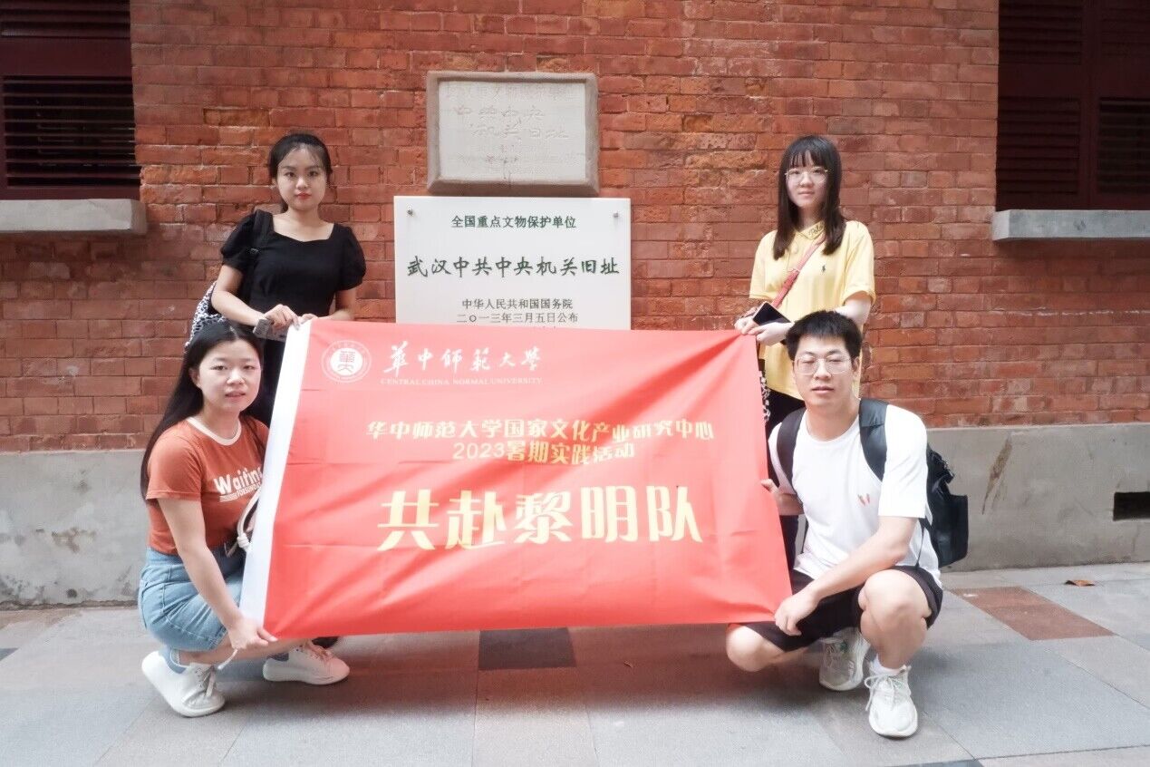华大青年讯(通讯员 张世甲 刘航)血沃中原肥劲草,寒凝大地发春华。红色文化是中国共产党领导中国人民在艰苦卓绝的革命斗争中形成的精神文化结晶,是涵盖不同历史阶段红色文化具体形态的综合性、集成性概念。作为新时代的华大青年人,必须深刻领会红色文化的价值立场、思想基点、本质要求、内生动力、科学思维、世界情怀,让红色文化在新征程上焕发时代光芒。为了从红色文化资源中汲取力量,铭党恩、跟党走,2023年8月8日,华中师范大学国家文化产业研究中心“共赴黎明”暑期实践队前往黎黄陂路武汉中共中央机关旧址纪念馆展开了一场红色调研。