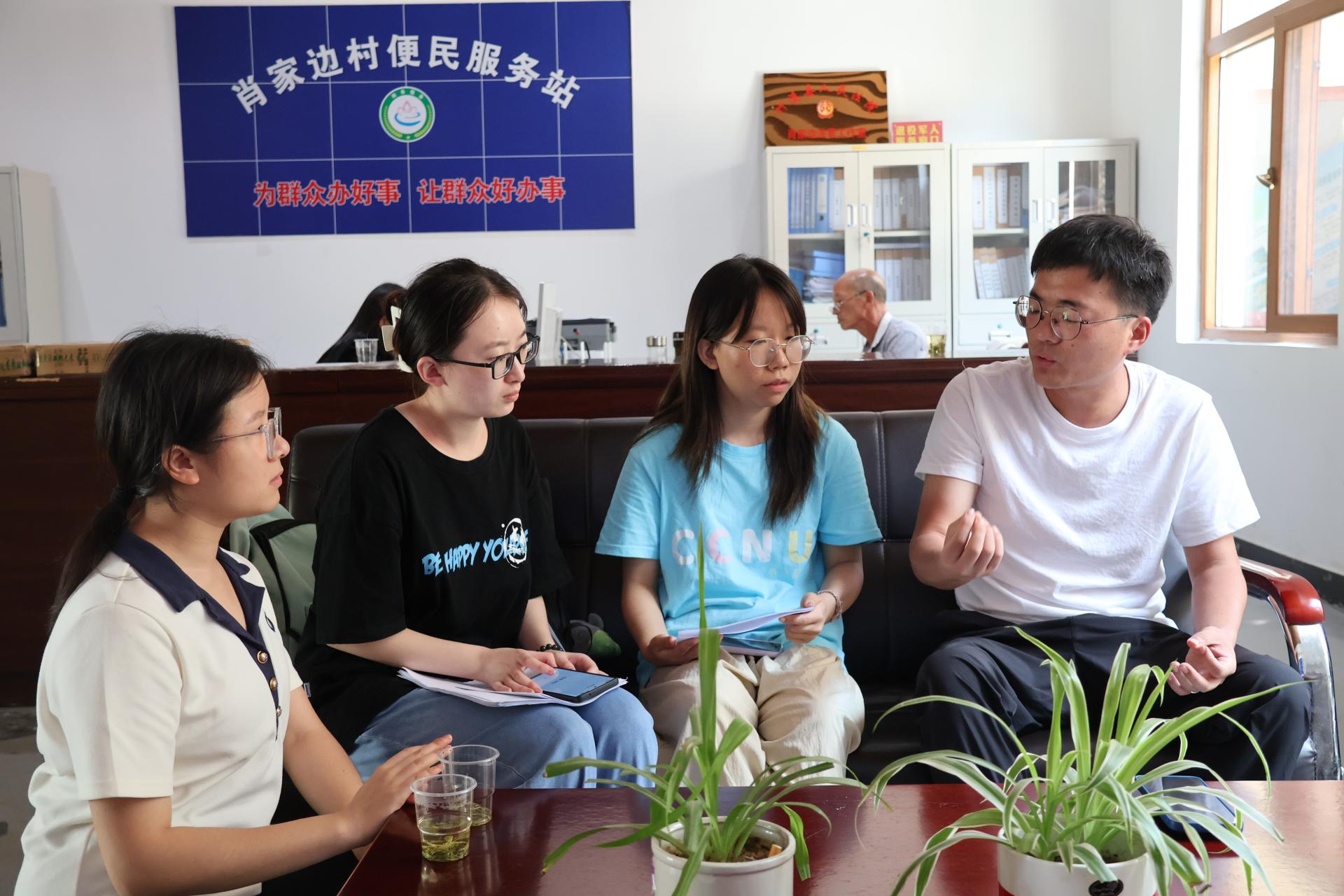 8月15日上午,服务队成员前往肖家边村村委会,对部分村干部进行访谈,了解肖家边村生态旅游的发展情况。村干部表示,乡村振兴,产业是关键。曾经的肖家边村贫穷落后,卫生差、矛盾多。2022年,竹溪县委、县政府把龙坝镇肖家边村作为首批“美好环境与幸福生活共同缔造”试点,投入数亿元资金,打造乡村振兴示范村。肖家边村党委政府立足肖家边村的人文历史和自然资源禀赋,实施农耕文旅乡村振兴综合体项目,打造了独居特色的“电影小村”文旅品牌。小村集红色文化、电影文化、特色餐饮、产品销售于一体,带动周边村民经营古色古香民宿、乡村特色农家乐,发展独具特色的生态旅游产业,拓宽了增收渠道。