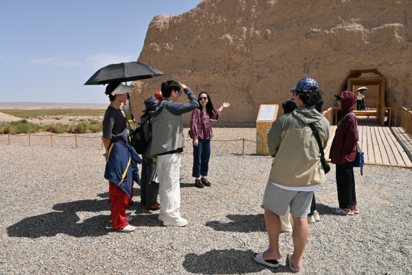 从历史角度看,玉门关连接了中国与西亚、中亚乃至欧洲的商贸通道。作为丝绸之路的一部分,它见证了古代中外文化交融与贸易的重要历史时刻。丝绸、茶叶、瓷器等中国特产,经由玉门关传至外域。与此同时,西域的奢侈品、文化和宗教也透过此处传入中国,深远地影响了双方的文明交流。随行老师对同学们讲解道,历史上,诸如汉武帝、骠骑将军霍去病、王莽等都曾在这里驻兵御敌,这使得玉门关成为中国古代军事史上的重要地标。