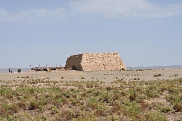 在带队老师的引领下,实践队首站参观了玉门关城址。玉门关包含18段长城、2座城址,戈壁、荒漠、河流交相辉映,北与北山相望,南与祁连山呼应,自古以来就是东西方交通的重要通道。现存关城呈方形,四周城垣保存完好,均由黄胶土夯筑而成。北坡下有东西走向的一条大车道,是历史上中原与西域诸国来往及邮驿之路,同学们实地考察了汉长城遗址、大方盘城和小方盘城遗址,直观感受到了中国古代雄伟的夯土工程,探索了两关汉塞的战略意义和风土人情。