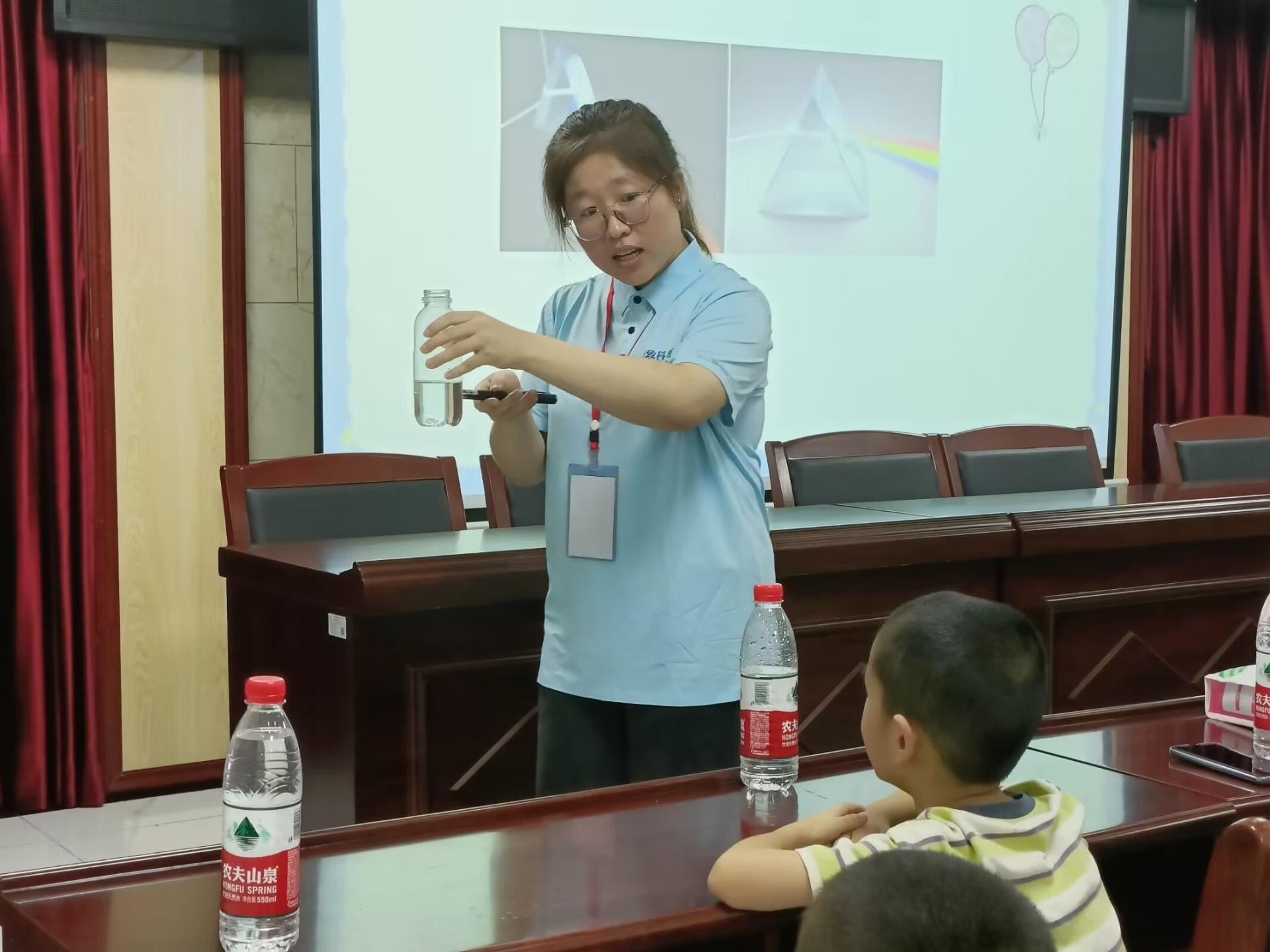 社区科普实践队为星光里社区的小孩子们进行了科普讲解活动——中国大科学装置。队员用硬币、水杯、激光笔等装置,展示了反射、折射等日常生活中常见的光学现象;鼓励小朋友们发现生活中神奇的科学现象,用学到的知识去解释、解决问题。队员用折射等光学知识作为引入,让小朋友初步了解凸透镜、凹透镜、望远镜的工作原理;深入浅出地介绍了世界大型望远镜的发展历程。让文化融入科学,让科学链接国际,让孩子们初步了解FAST和郭守敬望远镜的的工作原理及其重要意义,形成科技自信的同时也了解了反射与折射的知识。