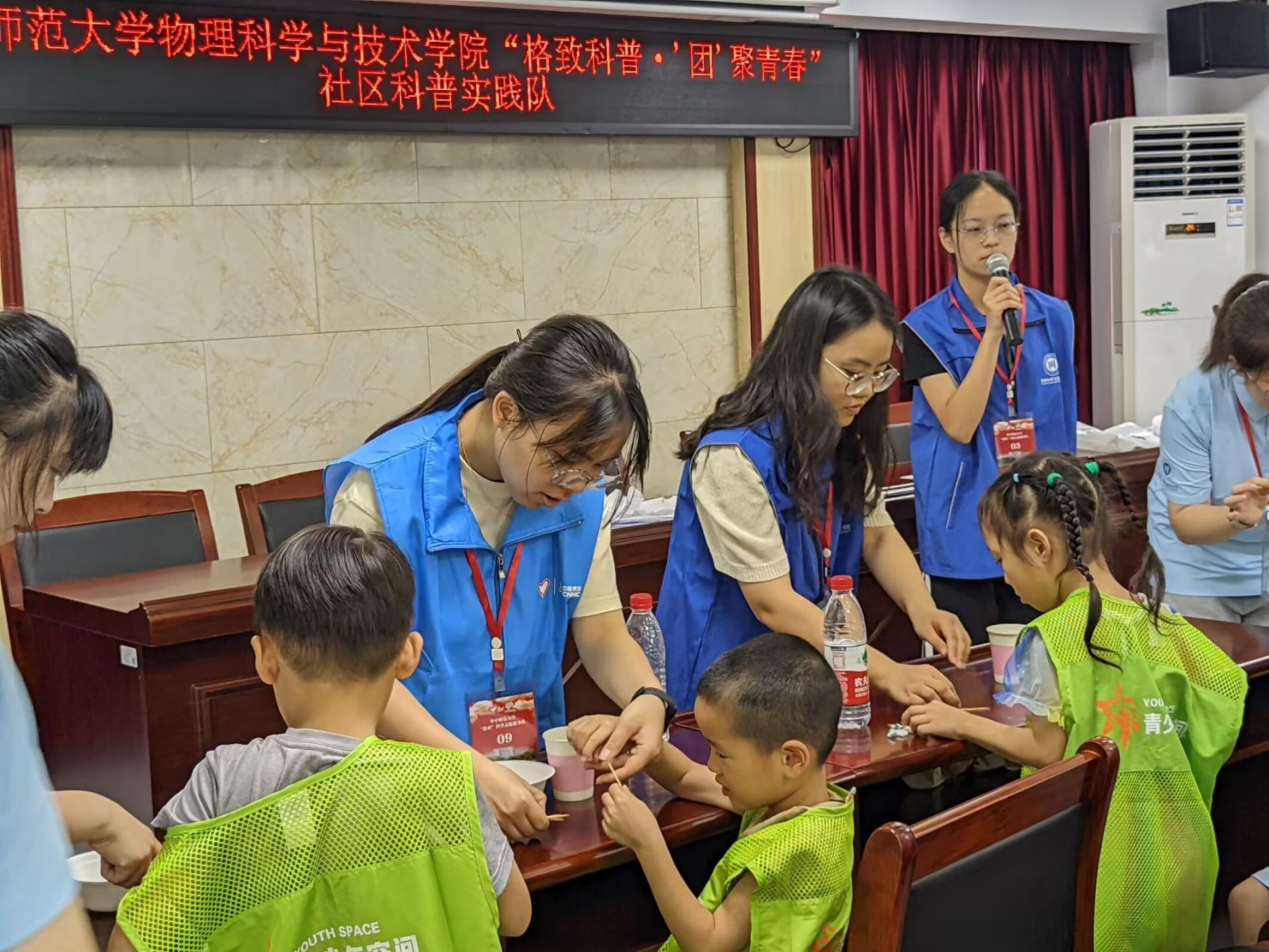 华大青年讯(通讯员 葛铠豪)2023年8月,华中师范大学物理科学与技术学院暑期“格致科普·‘团’聚青春”社区科普实践队在暑期陆续前往湖北省武汉市数个社区开展希望助学、陪伴敬老、格致科普等活动。截至8月23日,实践队来到星光里社区,为小孩子进行科普教育已经有了3天时间。