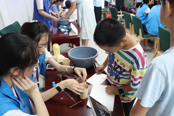 本次科普文化体验日活动设立“跳远乒乓”“倒置水杯”“雾里看字”“有奖问答”“虹吸现象”“模拟马德堡半球实验”等八个游戏项目,并通过集章的方式兑换奖品。孩子们在每个摊位前排队体验,认真聆听老师的讲解,在体验中增长对科学的兴趣,燃烧对物理的热情,寓学于趣,提高动手实践能力。