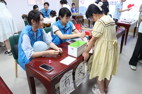 八个游戏项目从生活中、课本中取材,展现力学、光学等物理知识及安全知识,从生活走向科学、从科学走向生活。“跳远乒乓”游戏中,孩子们在乒乓球上方吹气,使乒乓球上下表面产生压强差而“跳动”;“雾里看字”游戏中,孩子们望向镜子,写出在镜子中显示的正确的名字;“扯不开的书”游戏中,孩子们通过拉扯两本每页夹在一起的书,体会摩擦力的强大作用;“有奖问答”游戏中,孩子们在题目所模拟的各类生活情境中,解决用电用火等安全知识。实践队队员们教导学生上手实验,并鼓励他们讲解所学新知,寓学于教,提高学生的表达能力。在每个小游戏之后,实践队队员们都会悉心讲解每个现象背后的原理,并适当拓展知识,培养学生们探索生活,格物致知的能力。