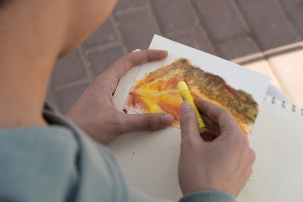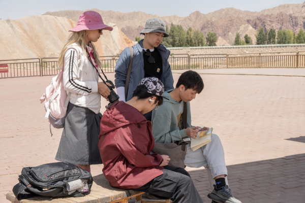 在观赏丹霞之美时,同学们不仅被大自然的奇妙景象所震撼,还积极地将这些壮丽的景色与自己的专业相结合。他们不仅仅是旅行的参与者,更是艺术的创作者,用灵动的笔触将这些景象永远定格,红色的丘陵、奇特的地貌、多彩的岩石,都成为了他们创作的素材。他们用画笔在画布上勾勒出丹霞独特的形态,用色彩表现出大自然的鬼斧神工。
