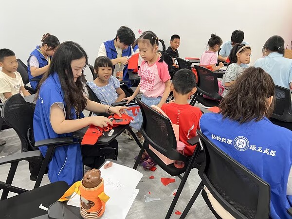 为进一步丰富社区学生课余生活,传承剪纸文化,实践队员举办了“小小手工家”实践活动。一把剪刀,一张彩纸,一双巧手,实践队队员向学生们阐述了剪纸的历史渊源、分类与工序、造型手段、构图方法等多方面的知识。同时,队员们带领孩子们从最基本的剪纸技法做起,剪出一幅幅精美的“春兔”作品。一画一刻一剪,活动现场一派热闹和喜庆气象。此次活动提升了孩子们对非遗文化——剪纸的兴趣和热情,激发了他们感受美、表现美、创造美的情感体验,在他们心中埋下传承弘扬优秀传统文化的种子。