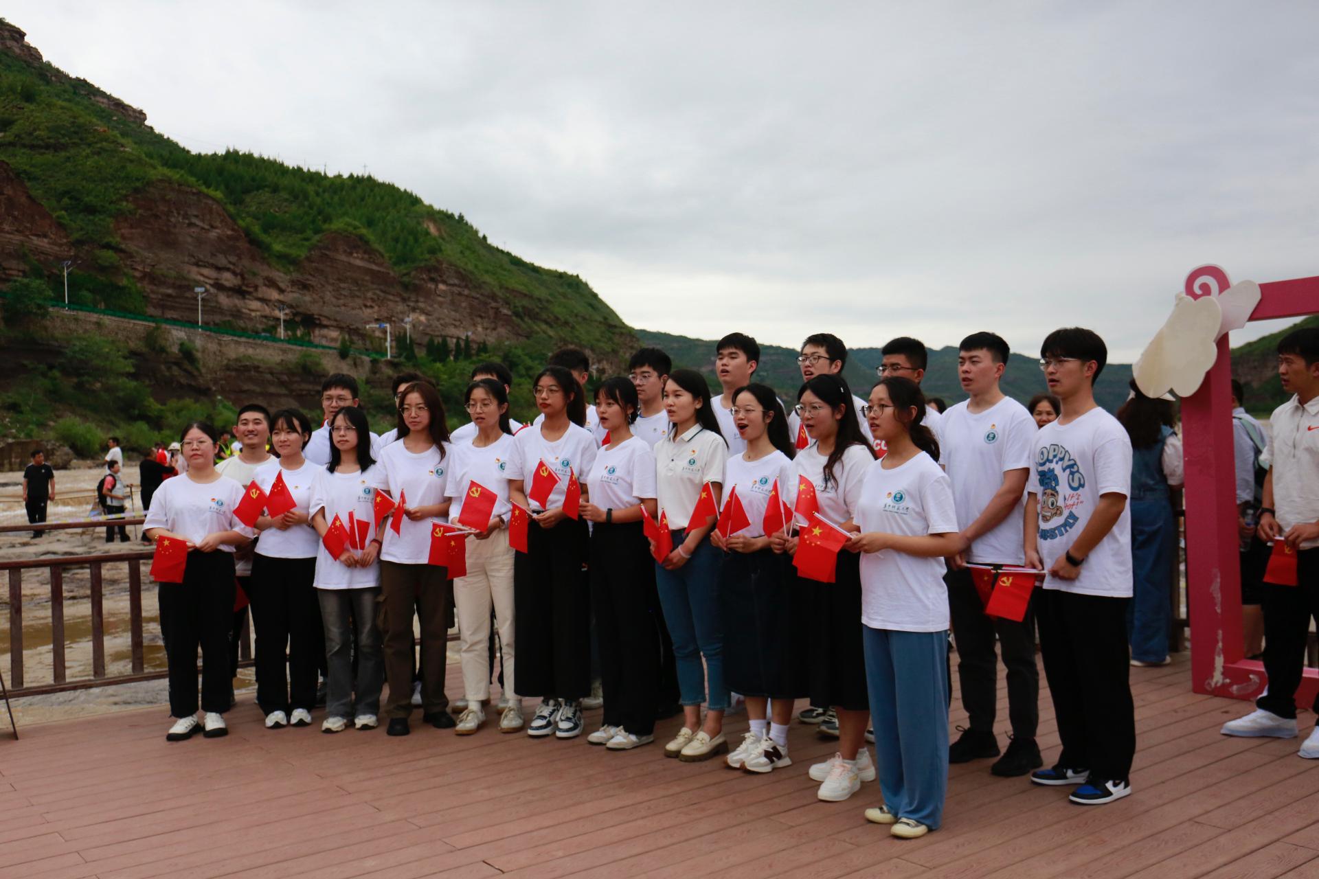 “奔腾不息的河水,从悬崖上倾斜而下,激起阵阵水雾,氤氲升腾;河水激荡,水雾萦绕,涌来万岛排空势,卷作千雷震地声。”这是属于母亲河独有的浪漫。为纪念毛主席诞辰130周年,在壶口瀑布沿岸,实践队成员们面对眼前震撼之景合唱歌曲《保卫黄河》,在慷慨激昂的歌声中感受母亲河的魅力,感受毛主席“为抗战发出怒吼,为大众谱出呼声!”的豪迈慨叹。青春聚力当此时,实践队坚定“保卫黄河,保卫华北,保卫全中国”的理想信念,积极践行“强国有我,请党放心”的青春誓言。