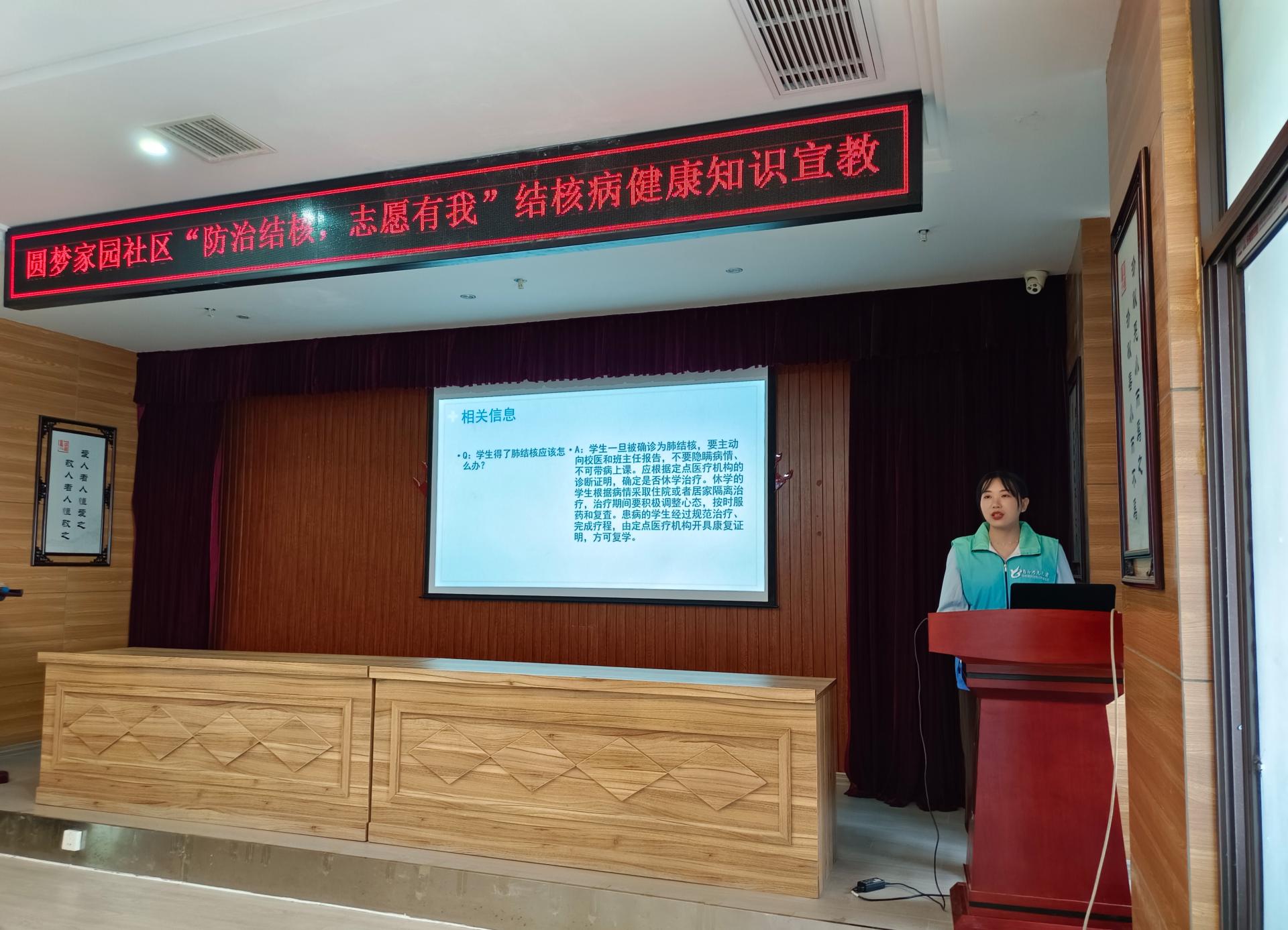 “预防结核病除了正确佩戴口罩,还要注意其他的防护措施,如勤洗手、不随地吐痰、打喷嚏或咳嗽时掩住口鼻等,坚持良好的卫生习惯,可以大大降低结核病的传播风险。” “肺结核病人确诊后,我国有费用减免的政策,为了保护自己及家人的健康,要多学习和掌握相关知识,尽早预防、及时发现。” 讲座结束后,队员们深入社区,向居民科普结核病相关知识,用通俗的语言,耐心细致地向群众宣传结核病的预防措施和治疗知识,重点为居民们普及了国家相关的治疗优惠政策,同时呼吁广大群众做好个人防护,增强此类呼吸道疾病的防控意识,勤洗手,多通风,树立正确的健康观念,保持良好生活习惯。