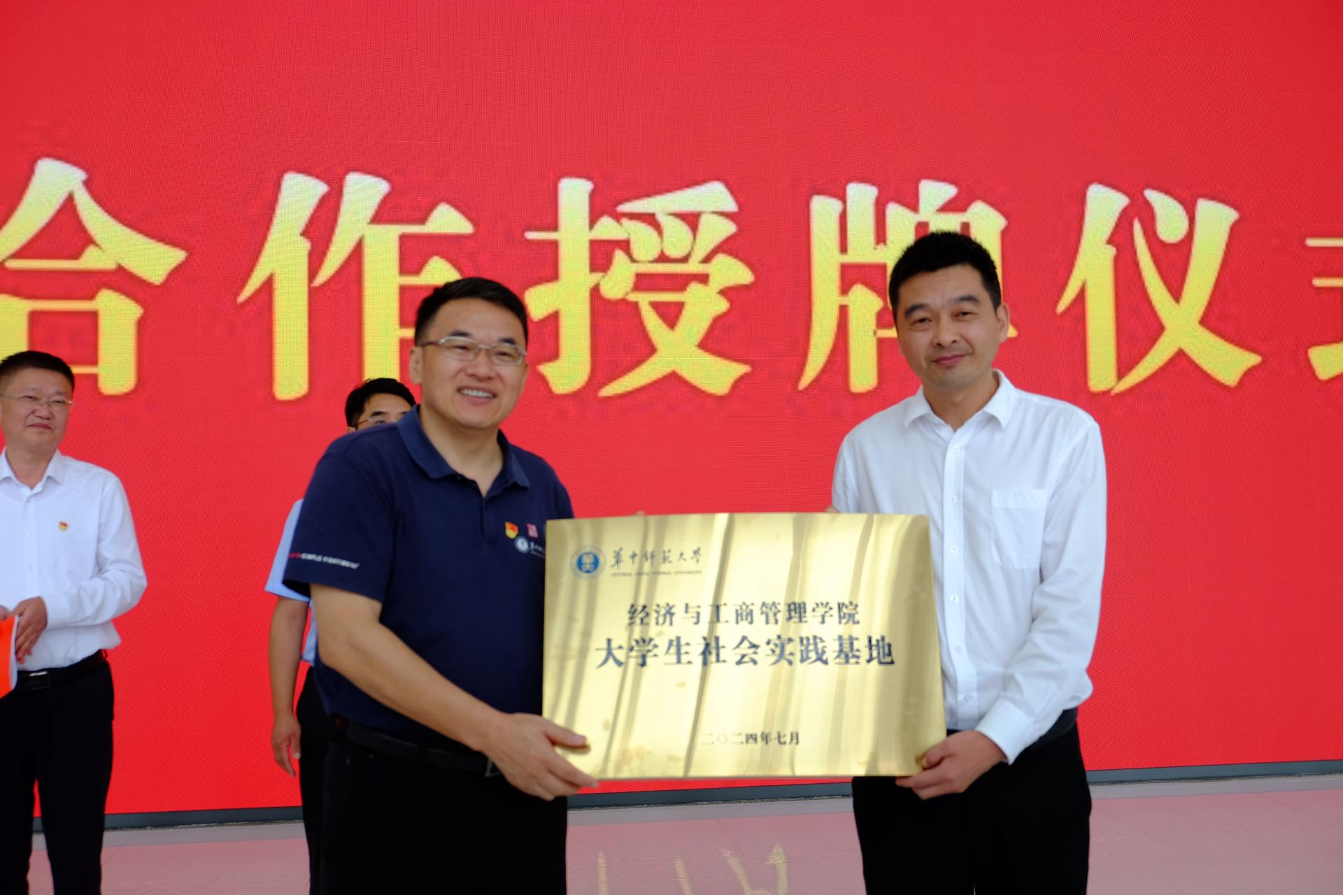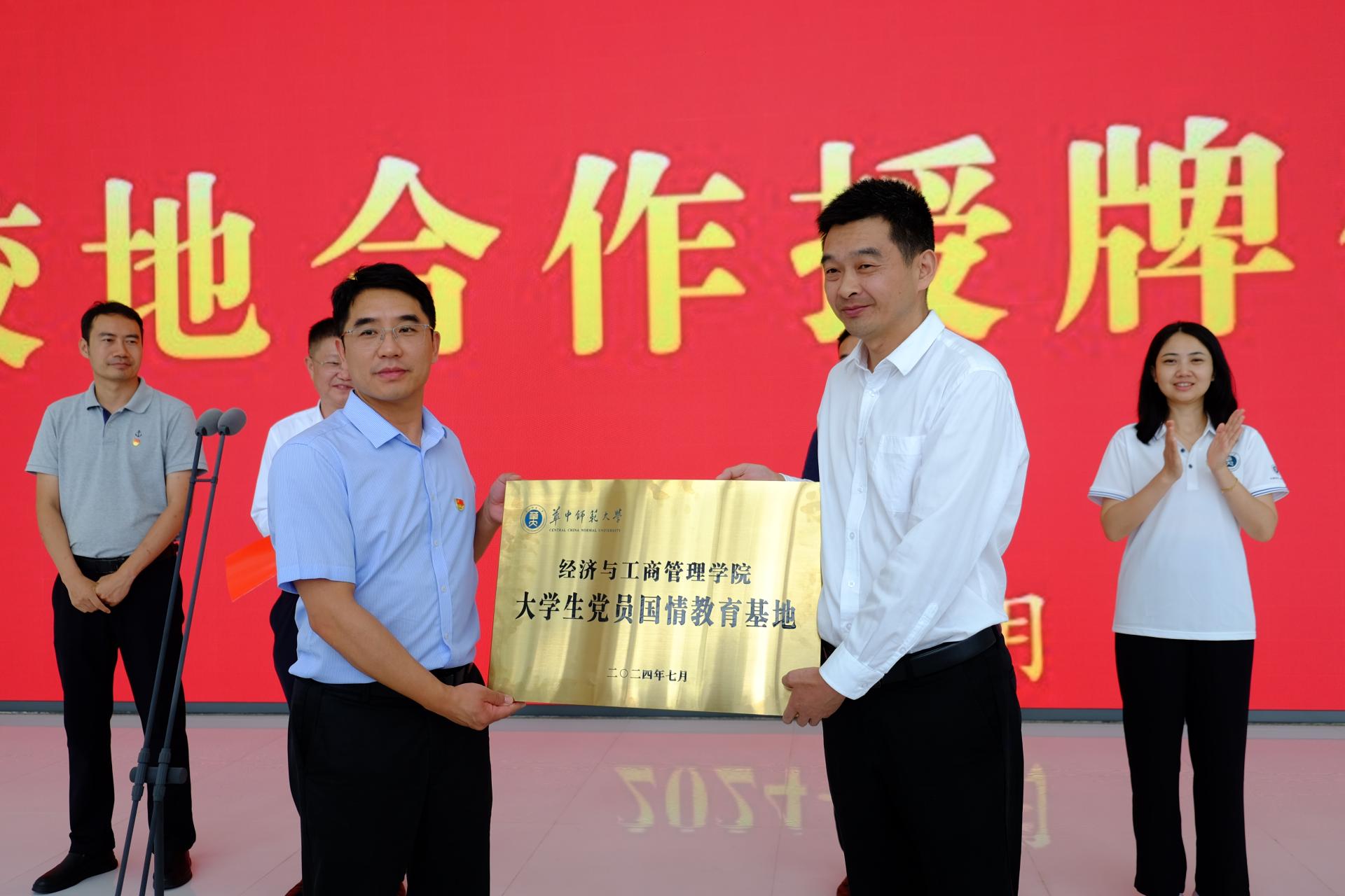 当日下午,授牌仪式在郧西县双子楼举行。中共郧西县委常委、县委宣传部部长何杰,郧西县人民政府副县长陈耀,华中师范大学经济与工商管理学院党委书记张勇,院长凃正革,院党委副书记陈娟,十堰市发改委副主任、经济系教授魏伟,院团委书记樊启迪,本科生辅导员岳峥嵘、吴鸿雪及华中师范大学鸿鹄实践队十堰分队全体队员出席本次仪式,随后一同参观双子大楼。