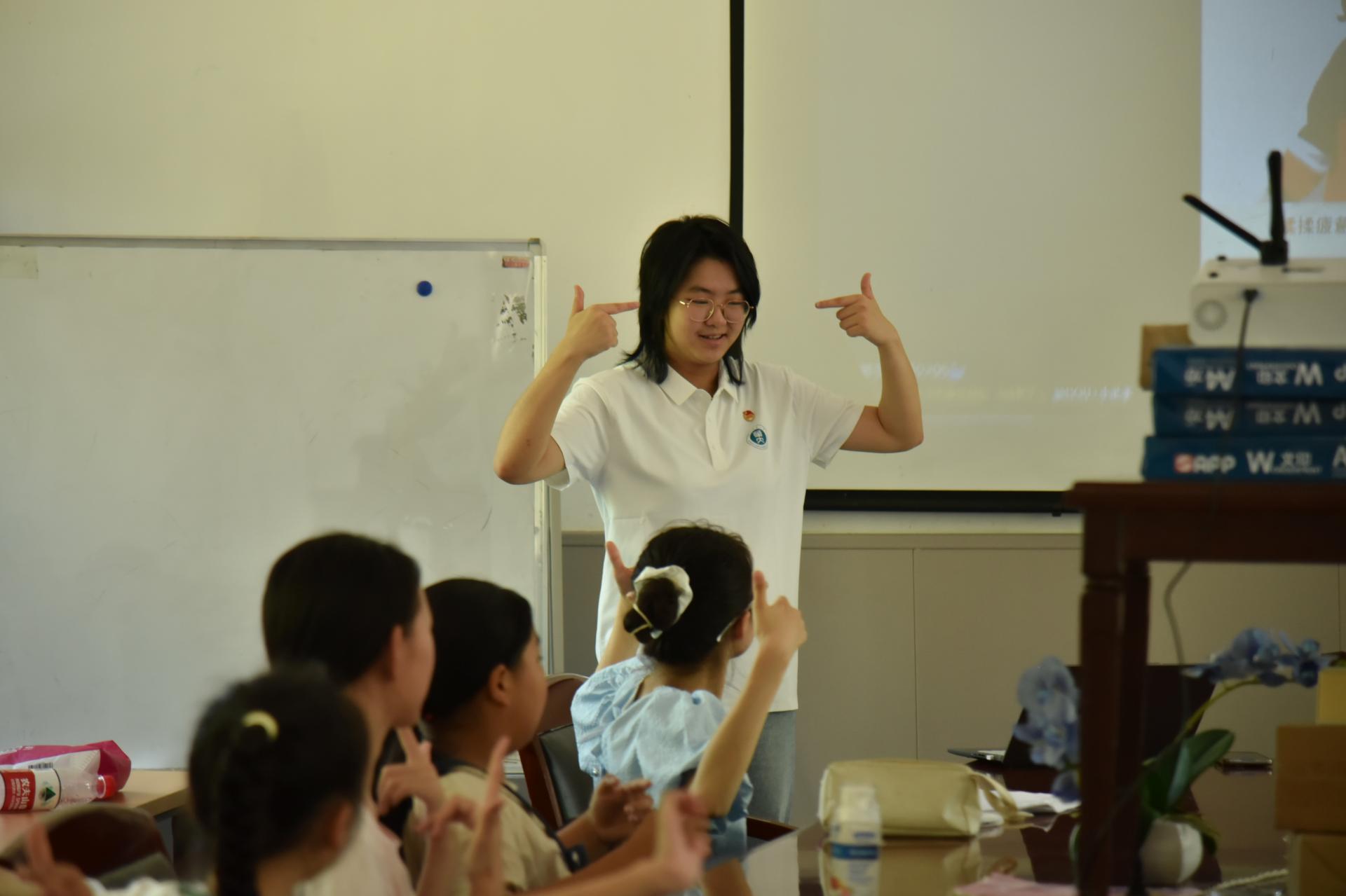 通过“击鼓传花”等破冰小游戏的进行,学员们迅速熟悉彼此,课堂氛围逐渐升温。才艺展示环节中,学员们争先恐后地上台表演唱歌、背诵古诗等才艺。在随后的手势舞学习环节,志愿者齐晓莹、罗冰垚带领大家一起学习《小美满》手势舞。学员们热情澎湃,随着音乐的律动仔细听讲,认真学习,在舞动的指尖上感受到了音乐与艺术的魅力。