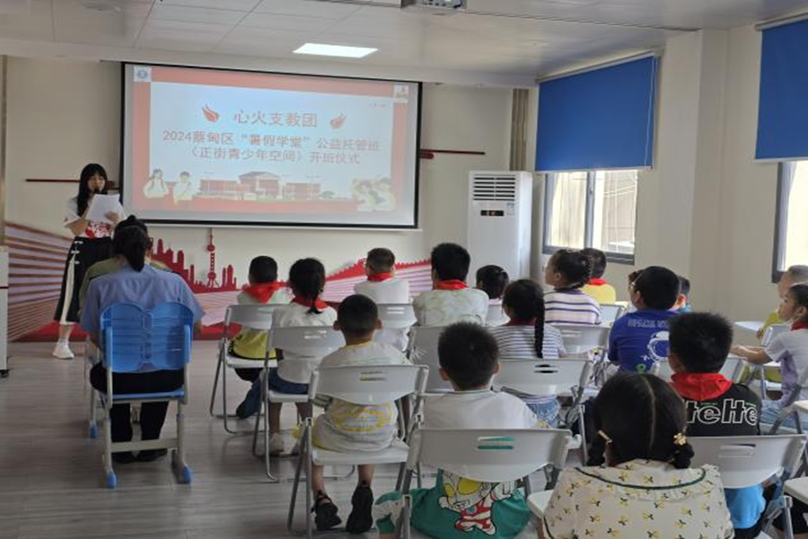 华大青年讯(通讯员 潘诗薇 聂静洋)为增进营员对本次暑期支教夏令营活动的了解,促进支教队员与营员的相互交流,7月8日上午,华中师范大学外国语学院心火支教团武汉队(以下简称“武汉队”)在武汉市蔡甸区正街社区服务站举办了“暑期学堂”开班仪式。蔡甸街道相关领导、区暑期托管点工作人员代表出席本次活动,全体营员及武汉队队员代表参与开班仪式,队员叶嵘昕主持仪式。