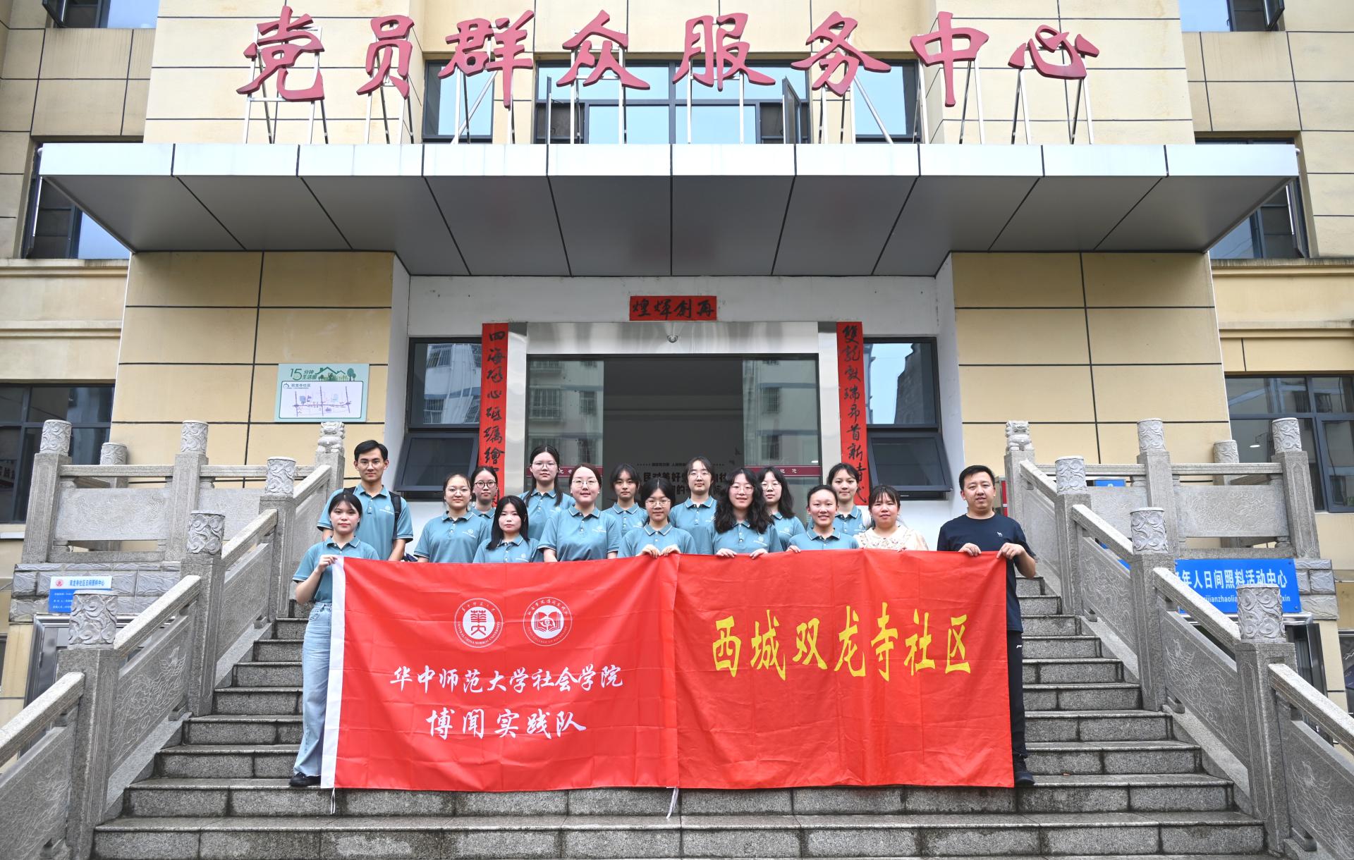 华大青年讯(通讯员 陈佳妮)7月10日,华中师范大学社会学院博闻实践队前往湖北省随州市曾都区双龙寺社区开展调研实践活动。实践队通过实地调研、访谈交流、活动观摩等形式,重点聚焦“共同缔造”理念如何高效融入社区治理之中以促进社区和谐稳定与繁荣发展的实践方法与路径,全面系统地了解双龙寺社区在党建引领下的社区治理创新实践经验。