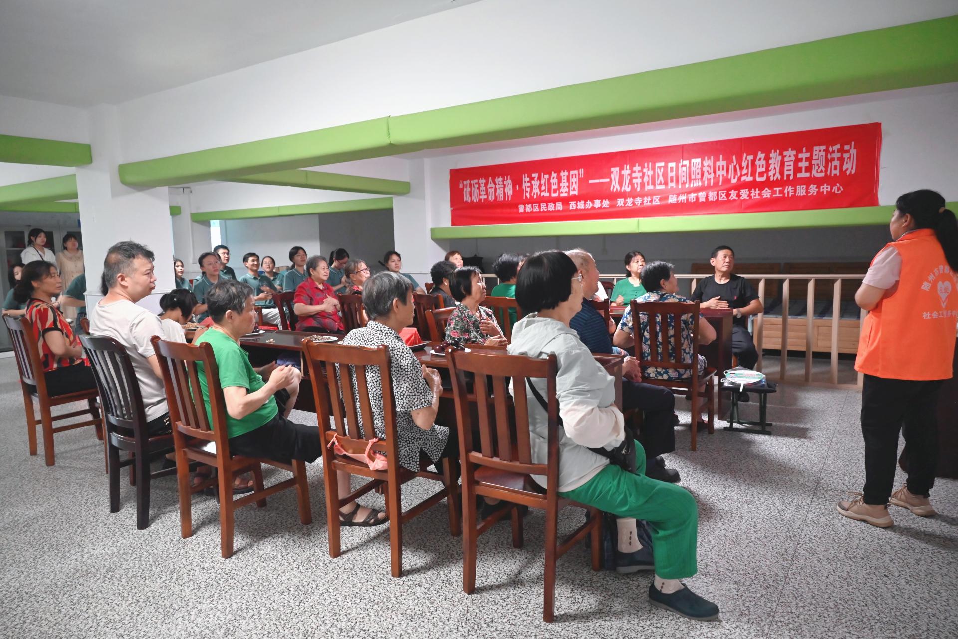 当日下午,博闻实践队积极参与到由曾都区友爱社会工作服务中心举办的“砥砺革命精神,传承红色基因”双龙寺社区日间照料中心红色教育主题活动。此次活动在一系列富有趣味性的全身锻炼操后拉开了帷幕,社工带领在场老人与实践队员们一同先后开展击鼓传花、有奖竞猜、红歌大合唱等活动,在轻松愉快的氛围中,社区高龄老人们既能够锻炼身体、增强体质,同时也感受到了来自社区的悉心关怀。此次爱老敬老活动不仅是一次健康关怀与红色教育实践活动,更是社会工作专业服务技巧与方法的生动展示。通过切身体验,参与活动的队员们深刻感受到了社会工作在促进社区和谐、提升居民福祉方面的独特价值,并为今后的专业学习积累了宝贵且实用的经验。