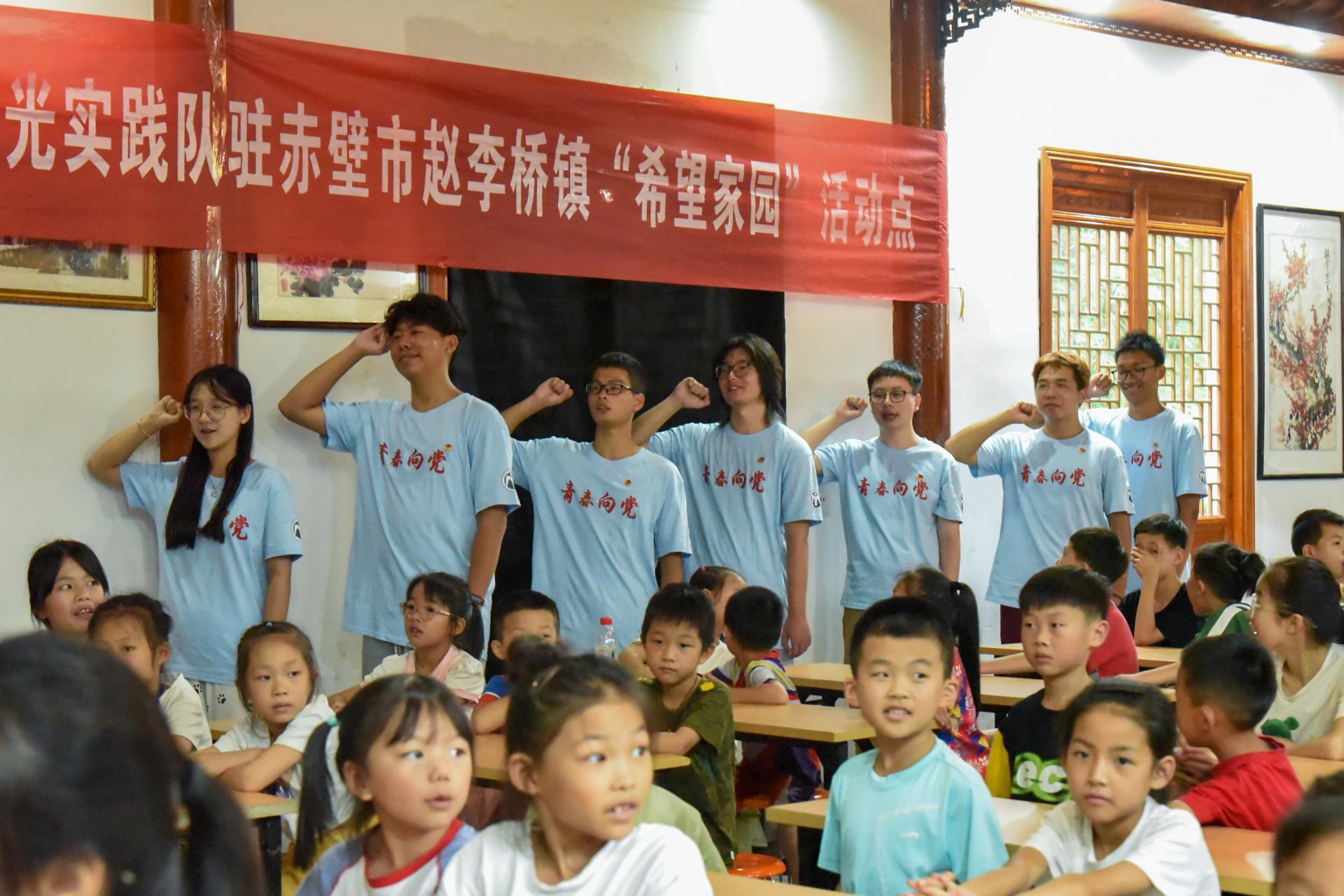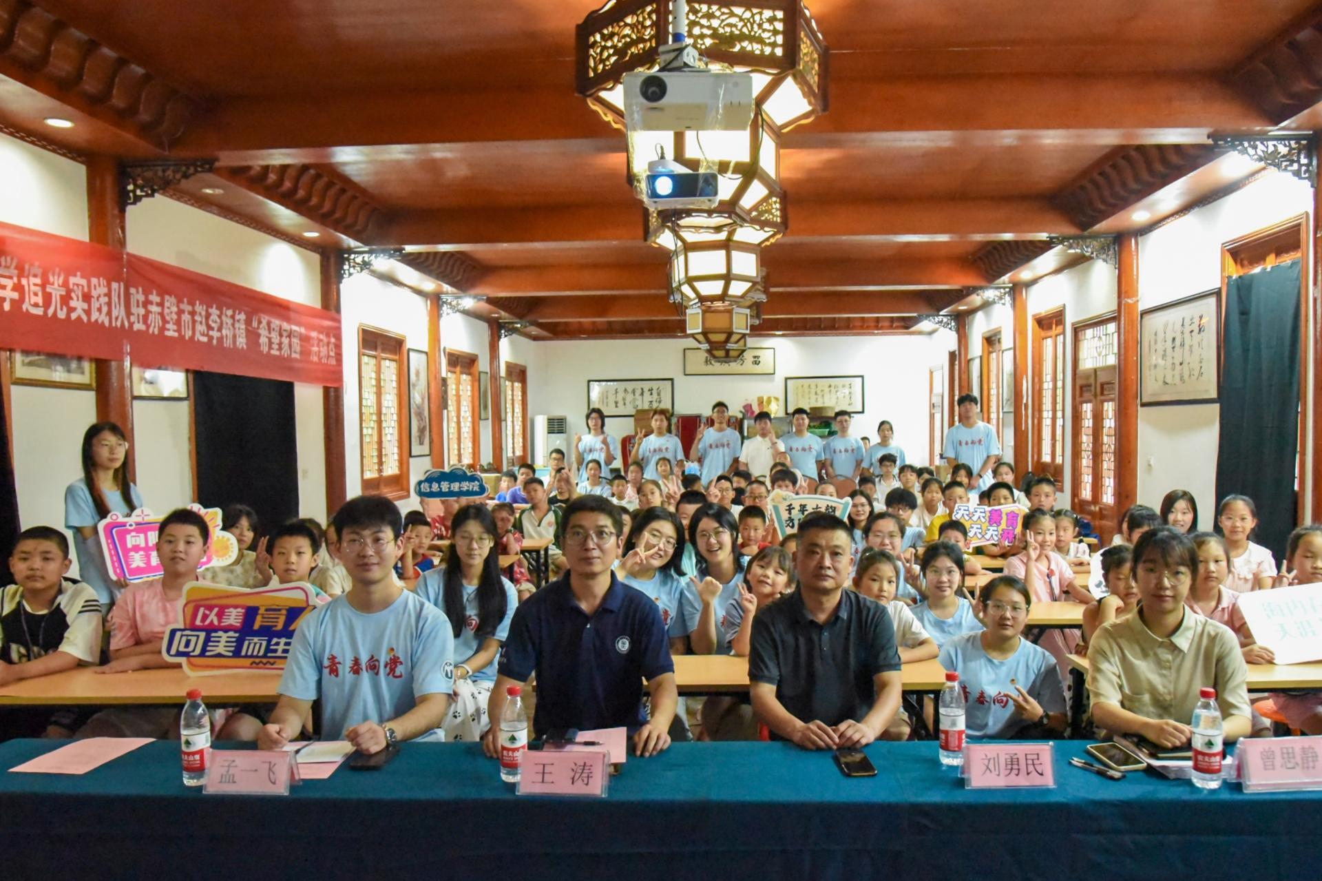 华大青年讯(通讯员 曹歆梦)7月13日,华中师范大学追光实践队在赤壁市赵李桥镇羊楼洞村正式举行“希望家园”开班仪式。赵李桥镇党委副书记刘勇民、华中师范大学信息管理学院党委副书记王涛、赵李桥镇干部曾思静、追光实践队带队老师孟一飞出席本次开班仪式。开班仪式由志愿者田东浩主持。